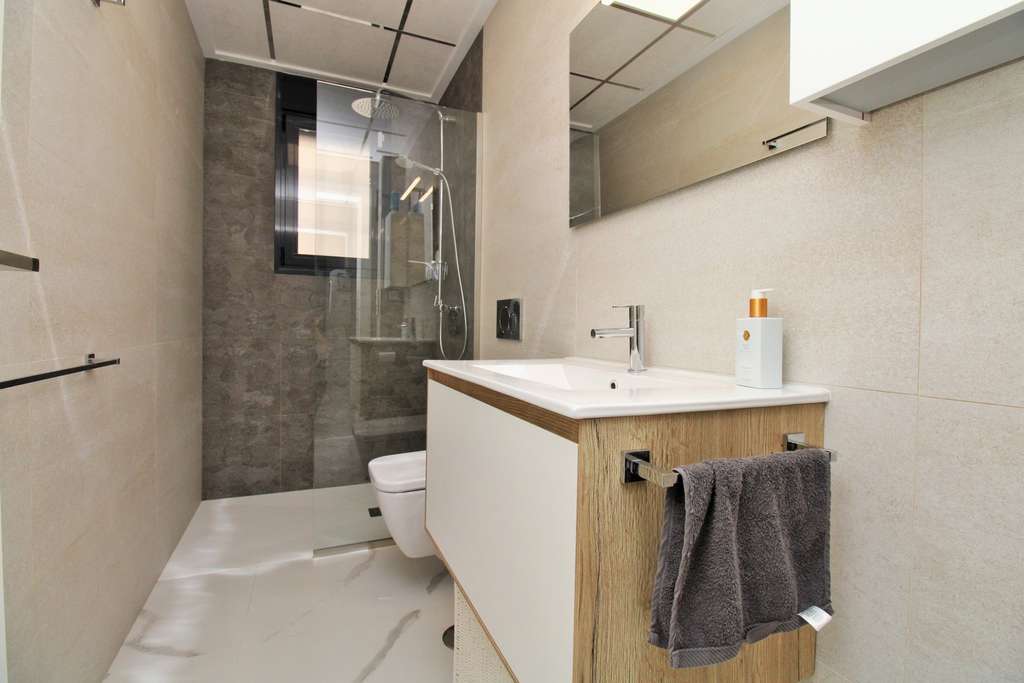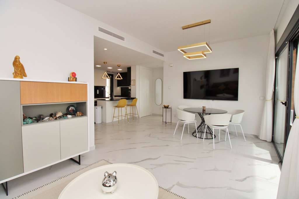 Ubicado en la popular urbanización Bella Vista de San Miguel de Salinas, este precioso apartamento en planta baja de 2 dormitorios y 2 baños combina el confort moderno con el estilo de vida mediterráneo más relajado. La vivienda ofrece una distribución abierta, luminosa y espaciosa, con suelos de mármol en toda la casa, una cocina moderna totalmente equipada y un acogedor salón-comedor con salida directa a la terraza, perfecta para disfrutar del sol de la Costa Blanca durante todo el año. El dormitorio principal cuenta con baño en suite, mientras que ambos dormitorios son amplios y están acabados con un alto nivel de calidad. En el exterior destaca una soleada terraza con vistas al mar y a las salinas, además de una fantástica cocina de verano ideal para disfrutar de comidas al aire libre. Los residentes de Bella Vista disfrutan de un entorno tranquilo a pocos minutos en coche del centro de San Miguel, con su encanto tradicional, mercado semanal y todos los servicios. La propiedad incluye también un garaje privado que ofrece espacio extra y seguridad. Ideal como vivienda permanente, casa de vacaciones o inversión, esta propiedad ofrece una magnífica oportunidad en una de las comunidades más deseadas de San Miguel de Salinas.