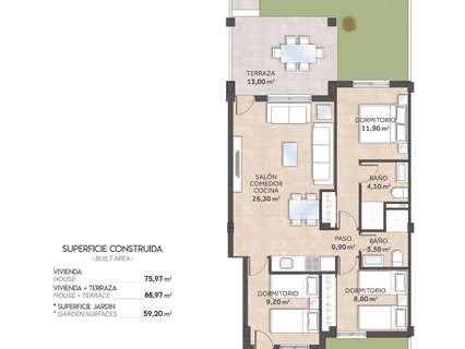 Todas las viviendas son muy amplias y se pueden adaptar a una distribución de 3 dormitorios (opcional con un coste adicional), con electrodomésticos incluidos.