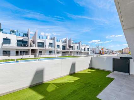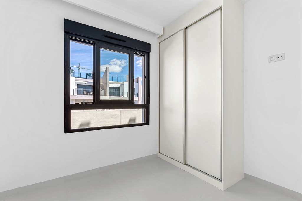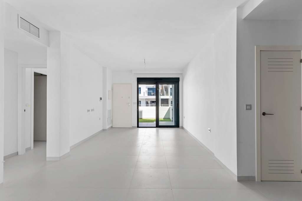 Venga a ver este piso en planta baja recién terminado, prácticamente a estrenar, en la encantadora localidad de San Miguel de Salinas.Este nuevo complejo residencial ofrece una mezcla perfecta de comodidades modernas y vida mediterránea al aire libre. El piso cuenta con 2 amplios dormitorios y 2 cuartos de baño con estilo, por lo que es ideal tanto para la vida permanente y de vacaciones. El salón y el comedor de planta abierta conectan a la perfección con las zonas exteriores, proporcionando luz natural y sensación de espacio. Disfrute de las dos terrazas privadas, una en la parte delantera y otra en la trasera, ideales para tomar el sol, comer al aire libre o relajarse en el césped artificial. Los residentes tienen acceso a una gran piscina comunitaria, rodeada de zonas verdes bellamente ajardinadas. Aquí podrá relajarse y disfrutar del sol español.San Miguel de Salinas ofrece una mezcla de encanto tradicional y comodidad moderna, con tiendas, restaurantes, campos de golf y playas a poca distancia. Si está buscando una casa de vacaciones, una oportunidad de inversión o un nuevo hogar bajo el sol, ¡este piso lo tiene todo!¿Se imagina vivir en el pueblo de San Miguel de Salinas, a sólo 15 minutos de la playa, en un precioso piso de 2 dormitorios y 2 baños en planta baja?Características principales:- Superficie construida: 65 m²- Parcela: 115 m²- Año de construcción: 2025- 2 dormitorios- 2 baños- Piscina comunitaria- Pre instal aire acondicionado- Armarios empotrados- Persianas eléctricas