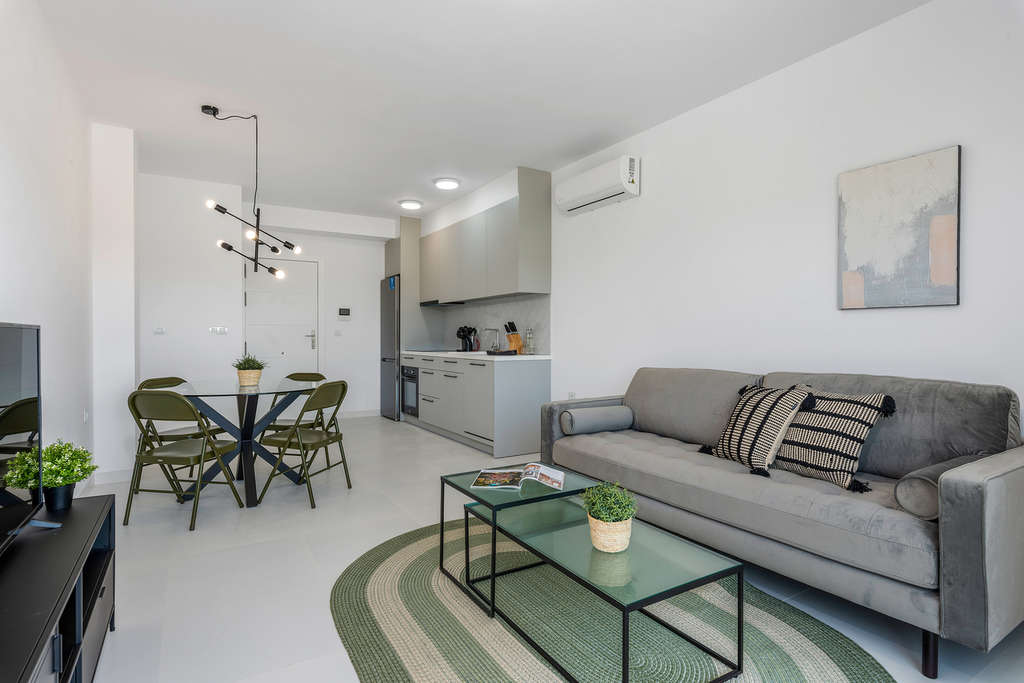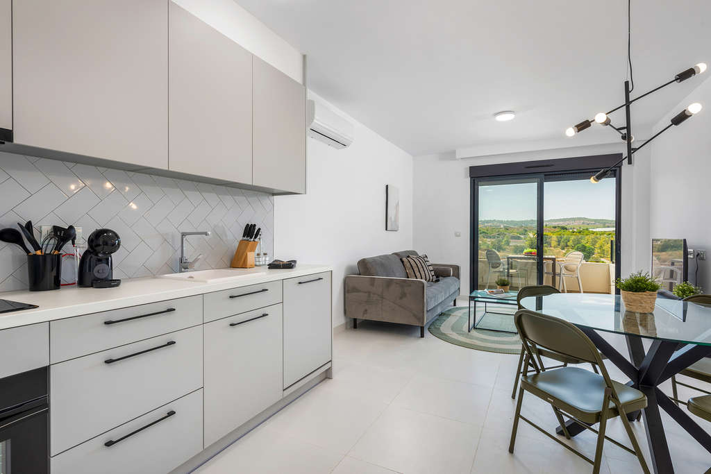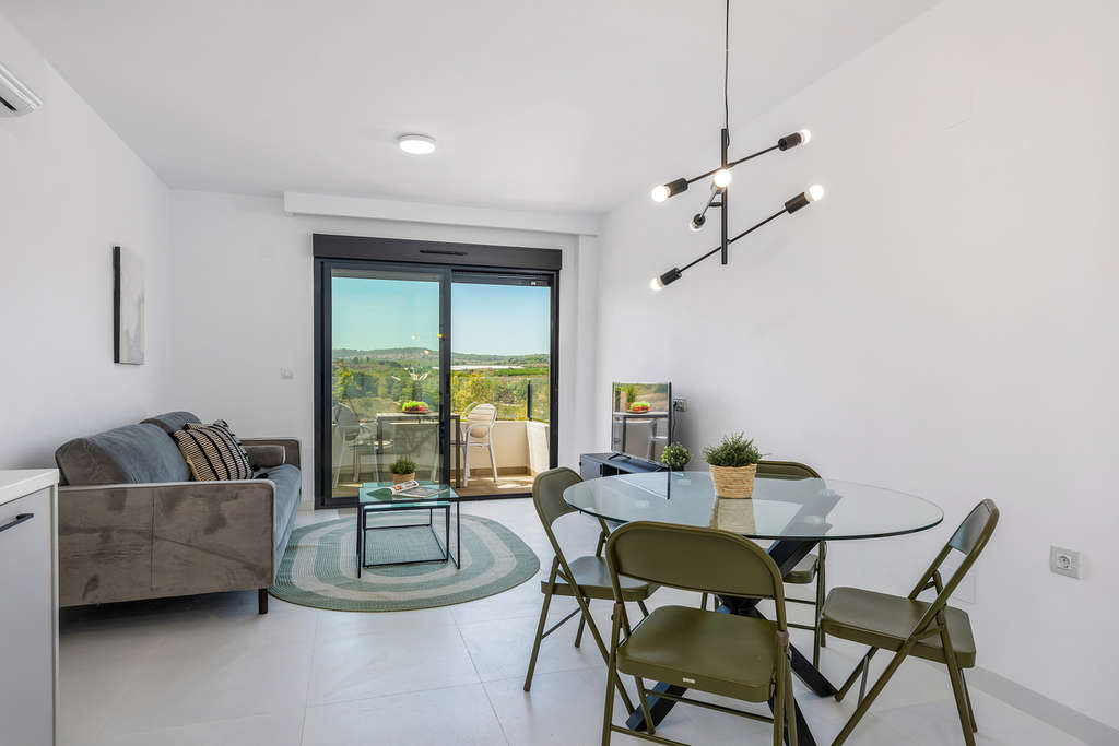 Este precioso apartamento de 2 dormitorios en segunda planta con terraza se encuentra en la cotizada zona de San Miguel de Salinas, a poca distancia de bares, supermercados y restaurantes locales. La propiedad se vende completamente amueblada y consta de un luminoso salón-comedor, una cocina americana totalmente equipada, dos dormitorios con armarios empotrados, dos baños con suelo radiante y una soleada terraza. El precio incluye trastero y plaza de aparcamiento en el garaje subterráneo. ¡Disfrute del clima español todo el año en un precioso jardín comunitario con piscina! Cerca de todos los servicios y de diversas zonas de ocio, como hermosos campos de golf, numerosos centros comerciales, y a solo 10 minutos de las playas de arena blanca de Orihuela Costa/Torrevieja y del centro comercial La Zenia Boulevard.