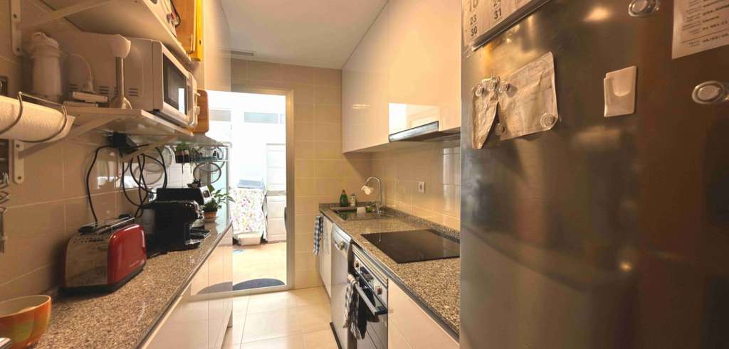 El apartamento cuenta con un luminoso salón-comedor, cocina totalmente equipada, dos dormitorios dobles y dos baños, incluyendo un elegante baño en suite en el dormitorio principal. La distribución es práctica y cómoda, ideal tanto para vivir todo el año como para vacaciones.