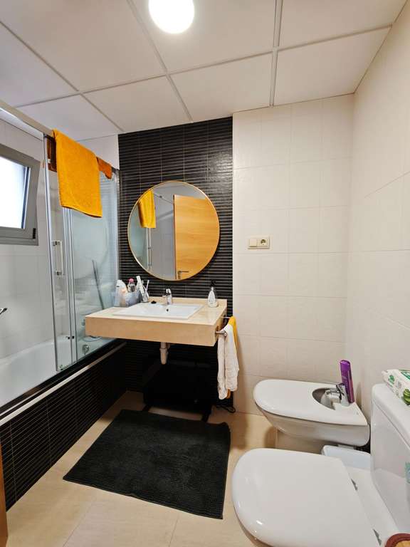 Apartamento moderno de 2 dormitorios con terraza en la azotea, piscina y vistas a las salinas en San Miguel de Salinas Apartamento listo para entrar a vivir, ubicado en un edificio moderno con ascensor, en una localización céntrica a poca distancia a pie del mercado semanal, tiendas, restaurantes y todos los servicios. La vivienda cuenta con un luminoso salón con cocina abierta totalmente equipada, dos amplios dormitorios y dos baños. Además, dispone de lavadero independiente y un patio, lo que aporta mayor comodidad y funcionalidad. El apartamento se vende completamente amueblado y está equipado con aire acondicionado, armarios empotrados y sistema de alarma. Todo está preparado para su uso inmediato, tanto para residencia propia como para alquiler. Uno de los grandes atractivos del complejo es la terraza comunitaria en la azotea, que cuenta con piscina, zona lounge, cocina exterior y unas bonitas vistas panorámicas a las salinas. Un espacio donde se combinan tranquilidad, vistas y vida al aire libre. La propiedad incluye también una plaza de aparcamiento en el garaje subterráneo y un trastero privado. **Características:** * 2 dormitorios * 2 baños * Cocina totalmente equipada * Lavadero y patio * Aire acondicionado * Armarios empotrados * Totalmente amueblado * Sistema de alarma * Ascensor en el edificio * Terraza comunitaria en la azotea con piscina y cocina exterior * Vistas a las salinas desde la azotea * Plaza de garaje subterránea * Trastero privado Ubicado en San Miguel de Salinas, en una zona tranquila y bien comunicada, a poca distancia a pie del mercado semanal y todos los servicios, y a un corto trayecto en coche de las playas de la Costa Blanca, campos de golf y centros comerciales. (Aproximadamente a 10–15 minutos de la playa)