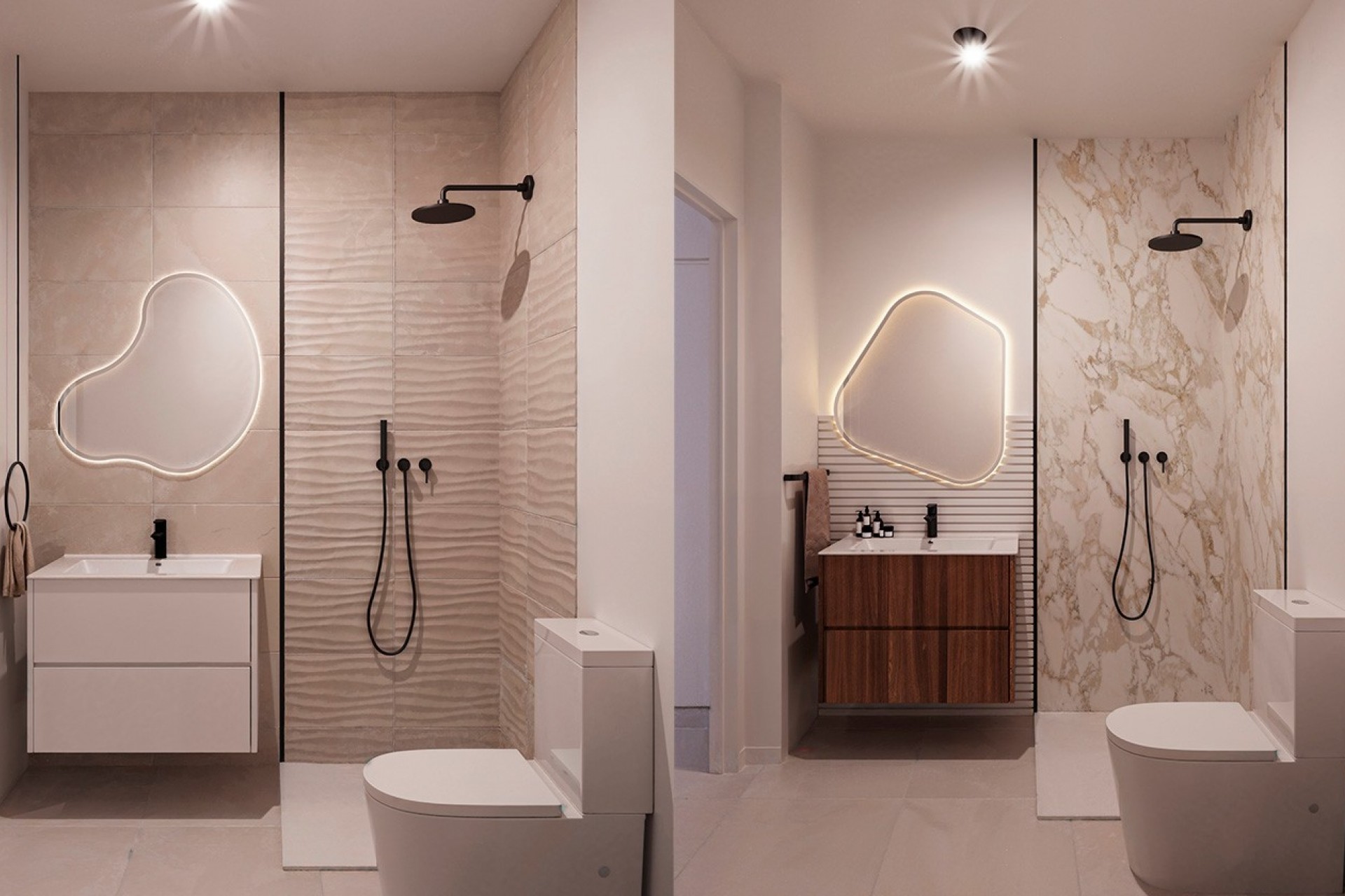 Las zonas comunes del complejo han sido concebidas como auténticos espacios de disfrute para los residentes, incluyendo modernas piscinas comunitarias, áreas ajardinadas con vegetación mediterránea cuidadosamente seleccionada y rincones de relax que invitan al descanso. Entre ellas, destaca una exclusiva área de piscina con cascadas, tumbonas sumergidas y zonas chill-out, que convierten este residencial en un verdadero oasis de tranquilidad y sofisticación.
