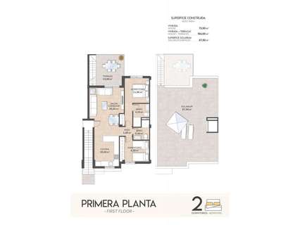 Viviendas amplias y modernasLa promoción ofrece dos tipos de viviendas que se adaptan a diferentes estilos de vida:Bungalows en planta baja: 2 dormitorios, 2 baños, dos amplios jardines privados y aparcamiento en superficie.Bungalows en planta superior: 2 dormitorios, 2 baños, amplio solárium con vistas al mar y aparcamiento en superficie.Todas las viviendas son muy amplias y se pueden adaptar a una distribución de 3 dormitorios (opcional con un coste adicional), con electrodomésticos incluidos.