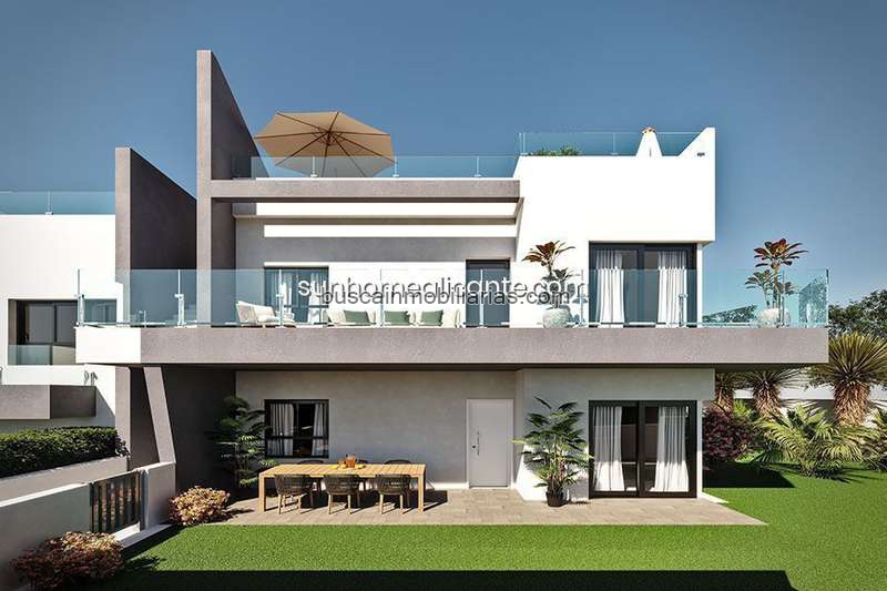Residencial de 100 de viviendas adosadas, tipo bungalow de 2 y 3 dormitorios, distribuidas en plantas bajas con jardín o plantas altas con solárium privado. Residencial completamente cerrado con piscinas comunitarias para adultos y niños, zonas verdes, área de juegos para niños. Se encuentra ubicado en San Miguel de Salinas cerca de Campos de Golf, Centros Comerciales.