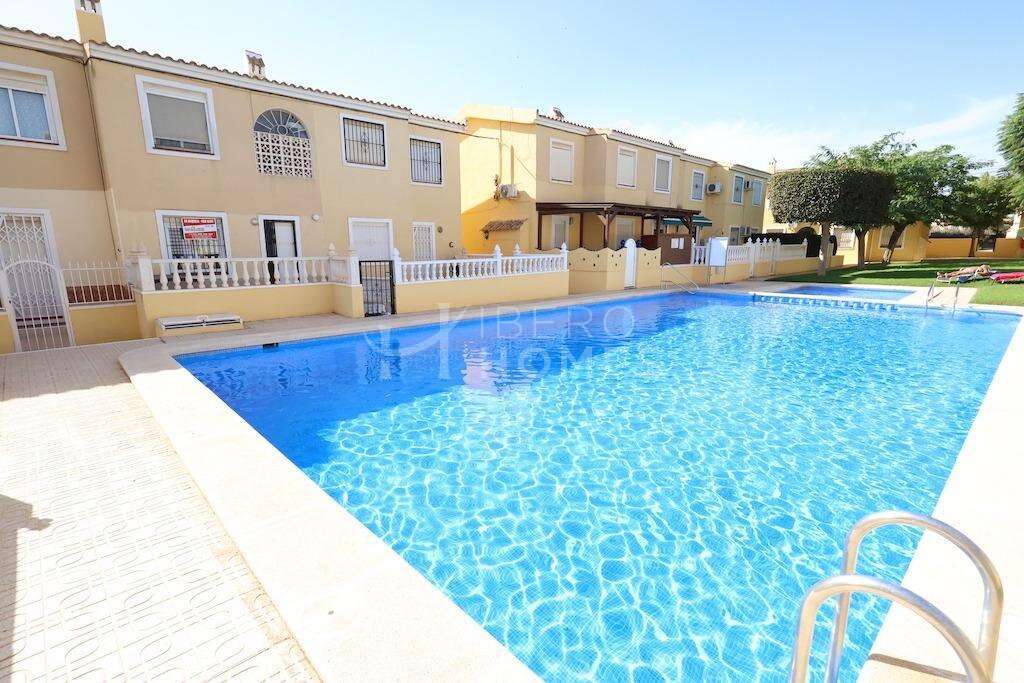 Dúplex Adosado en Venta en Lomas del Golf, Villamartín – Ideal para Disfrutar del Sol y el Mar~~¿Buscas una casa luminosa, espaciosa y bien ubicada? Este dúplex adosado de 114 m² en la urbanización Lomas del Golf de Villamartín es la opción perfecta. Con una orientación sur que asegura luz natural durante todo el día, esta vivienda destaca por su diseño funcional y las numerosas opciones de disfrute al aire libre.~~Características principales:~~•Superficie: 114 m².~•Dormitorios: 3, uno en la planta baja, ideal para familias o visitas.~•Baños: 2, cómodos y bien distribuidos.~•Salón-comedor amplio con acceso directo a la terraza.~•Cocina americana equipada.~•Terraza en la planta alta y un solárium con pérgola, perfectos para disfrutar de las vistas al mar.~•Parcela privada en la parte trasera, amplia y con espacio suficiente para instalar una piscina privada.~•Aire acondicionado en toda la vivienda para un confort óptimo.~~Urbanización Lomas del Golf:~~La comunidad ofrece varias piscinas comunitarias y está cerca de todos los servicios. Perfecta tanto para residencia habitual como para vacaciones.~~Esta casa en venta en Villamartín se entrega completamente amueblada. ¡Lista para entrar a vivir!~~