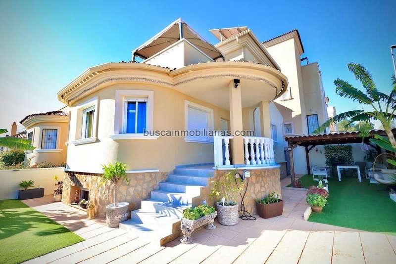 Presentamos este magnífico chalet independiente en esquina, ubicado en un residencial exclusivo de San Miguel de Salinas. Esta vivienda destaca por su diseño amplio y funcional, ideal para disfrutar al máximo del estilo de vida mediterráneo cuenta con una parcela de 215 m2 y una vivienda de 163m2 con 4 dormitorios y 2 baños distribuidos de la siguiente forma;. . • Sótano: Salón-comedor amplio y 2 dormitorios, perfecto para visitas o crear un espacio privado.. . • Planta baja: Espacioso salón-comedor, cocina independiente completamente equipada, 1 baño completo y 1 dormitorio.. . • Planta alta: Dormitorio principal, baño completo y una gran terraza, perfecta para relajarse o disfrutar del sol.. . Características destacadas. . • Exterior: Entrada para coche, zona de barbacoa y un encantador espacio chill out para reuniones o momentos de tranquilidad.. . • Sostenibilidad: Placas solares, lo que garantiza eficiencia energética y un ahorro significativo en el consumo eléctrico.. . • Equipamiento: Se vende amueblada y equipada con aire acondicionado para mayor comodidad.. . Residencial. . El chalet forma parte de un residencial que cuenta con una piscina comunitaria, ideal para refrescarse y socializar con los vecinos.. . Esta vivienda ofrece el equilibrio perfecto entre confort, funcionalidad y sostenibilidad, en un entorno tranquilo y bien comunicado.. .