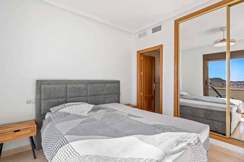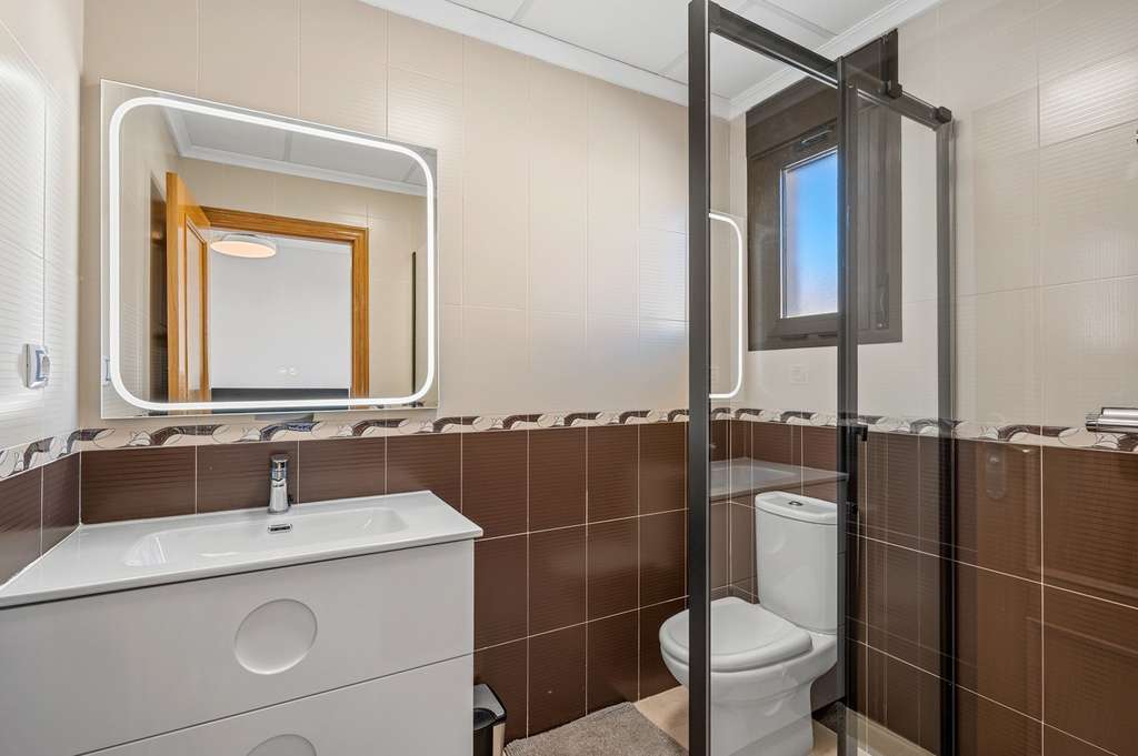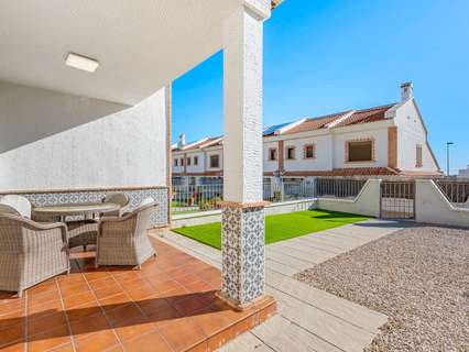 Esta casa adosada muy bien conservada, con 3 dormitorios y 3 baños, se encuentra en la encantadora urbanización Villas María en San Miguel de Salinas. Es un hogar ideal para quienes buscan una vida cómoda bajo el sol español, ya sea para residencia permanente o para vacaciones. La casa tiene una distribución práctica y bien pensada. En la planta baja, encontrará un dormitorio y un baño, perfectos para invitados o para quienes prefieren tener todo en una sola planta. La cocina independiente, totalmente equipada, se abre a una terraza contigua, perfecta para desayunar al sol de la mañana. El amplio salón-comedor de planta abierta disfruta de mucha luz natural y se abre al acogedor jardín orientado al sureste, un lugar maravilloso para disfrutar de la vida al aire libre durante todo el año. Hay un amplio garaje subterráneo con: una plaza de aparcamiento privada y un espacioso trastero de aprox. 15 m². La casa forma parte de una urbanización agradable y bien cuidada y se encuentra a solo 2 km del centro del pueblo, donde encontrará todos los servicios como tiendas, restaurantes, colegios, farmacia y acogedoras terrazas. San Miguel de Salinas es un pueblo español encantador y auténtico en el sur de la Costa Blanca. El pueblo goza de una posición ligeramente elevada entre las lagunas saladas de Torrevieja y el mar Mediterráneo, ofreciendo vistas impresionantes y un microclima saludable. Lo que hace que este lugar sea tan atractivo: A tan solo 15 minutos en coche de las playas de Orihuela Costa. Cerca de varios campos de golf de renombre como Las Colinas, Campoamor y Villamartín. Buenas conexiones con los aeropuertos de Alicante y Murcia. Una zona residencial tranquila con residentes internacionales. Mercado semanal y una animada plaza con ambiente local. San Miguel combina tranquilidad y naturaleza con una excelente accesibilidad y todos los servicios al alcance de la mano: un lugar ideal para quienes desean experimentar la auténtica España sin renunciar a la comodidad. Gastos de comunidad/VVE: 52 €/año. Impuesto sobre bienes inmuebles/Suma: 350 €/año.