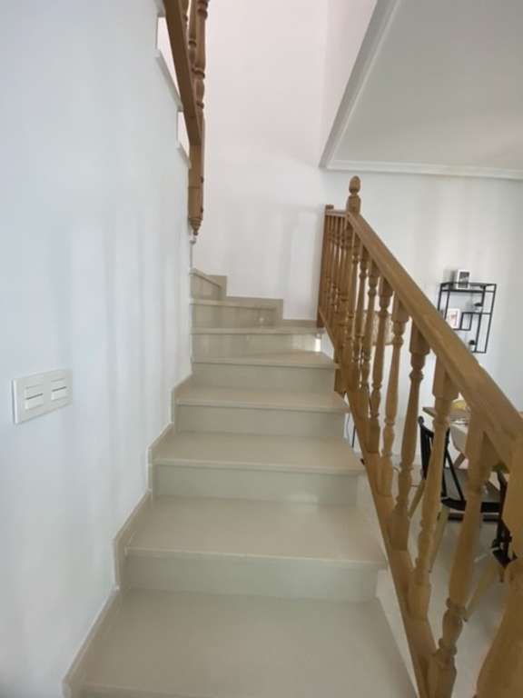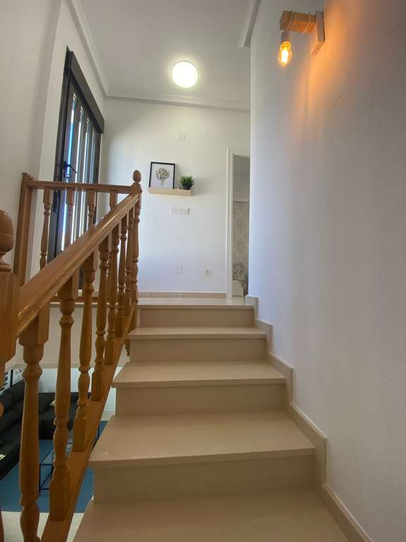 Esta casa adosada ofrece una mezcla de comodidad y conveniencia modernas, habiendo sido totalmente reformada y ubicada en un entorno sereno cerca de San Miguel de Salinas. Totalmente amueblada con un alto estándar.<strong>Características de la propiedad:</strong>Interior:3 Dormitorios: Amplios, cada uno con armarios empotrados. El dormitorio de la planta baja tiene un armario con espejo y acceso directo a la terraza trasera.3 Baños: Cada dormitorio en el primer piso tiene un baño en suite, uno con bañera y el otro con ducha. Los baños están totalmente reformados con accesorios modernos.Amplio salón-comedor: Luminoso y ventilado, con acceso a un porche cubierto y terrazas.Cocina independiente: Totalmente equipada con electrodomésticos y muebles nuevos.Cuarto de servicio: Convenientemente ubicado debajo de la escalera.<strong>Exterior:</strong>Amplio jardín delantero: Ofrece amplio espacio para actividades al aire libre y jardinería.Terrazas: Tanto la terraza delantera como la trasera ofrecen amplio espacio para relajarse y entretenerse. El primer piso tiene una gran terraza frontal accesible a través del dormitorio principal o una puerta separada. Estacionamiento: Garaje cubierto para 1 vehículo. Cuarto de almacenamiento: 10 m² de espacio para necesidades de almacenamiento adicionales. Orientación: Proporciona mucha luz natural y ventilación cruzada durante todo el día. Mobiliario: Totalmente amueblado con muebles, iluminación, cortinas y decoración nuevos, listo para mudarse. Ubicación y alrededores: Entorno natural: Ubicado en una zona privilegiada rodeada de naturaleza, con acceso a parques, senderos y caminos de montaña para caminar o andar en bicicleta. Servicios cercanos: A solo 2 km de San Miguel de Salinas, donde puede encontrar una variedad de restaurantes, tiendas, escuelas e instalaciones deportivas. Campos de golf: Ideal para los amantes del golf, con 6 campos de golf a tan solo 20 minutos en coche. Playas: Las playas más cercanas están a 9 km al sur y ofrecen una variedad de calas y playas a 20 minutos en coche. Esta casa adosada combina la vida moderna con la belleza natural, lo que la convierte en un hogar ideal para quienes buscan comodidad y conveniencia en un entorno tranquilo.