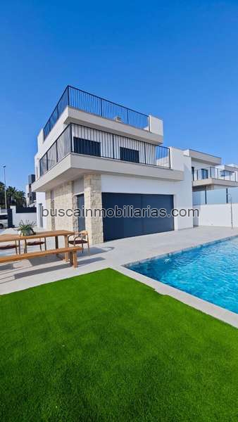Villa independiente con tres dormitorios, generosas parcelas y amplias terrazas con preciosas vistas al campo y a la costa mediterránea en Residencial situado en un entorno natural privilegiado entre San Miguel de Salinas y Villamartín, Orihuela Costa.