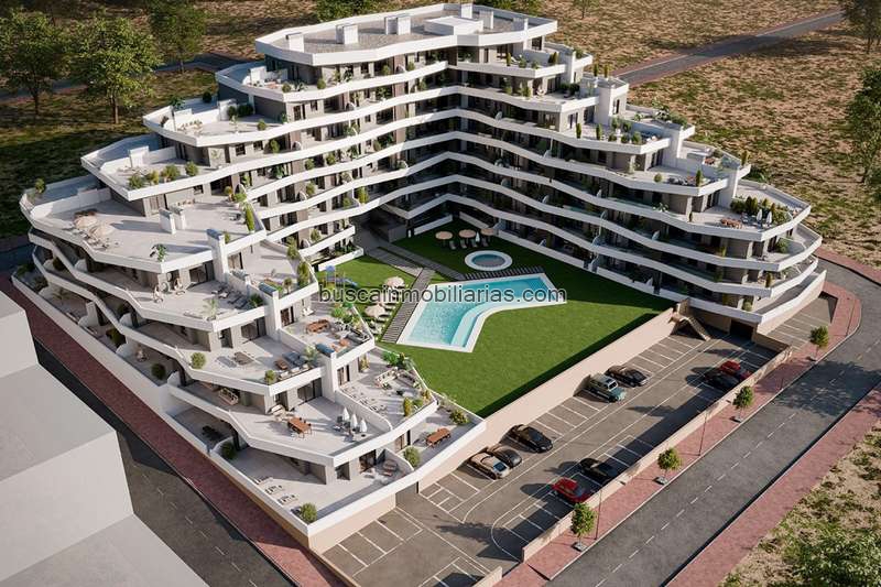 Costa Blanca Eiendom presenta un nuevo proyecto residencial en San Miguel de Salinas, un enclave que combina tranquilidad y proximidad a los principales servicios. Este exclusivo complejo consta de 165 modernos apartamentos distribuidos en 7 plantas, con opciones de 2 o 3 dormitorios y 2 baños. De estas viviendas, 30 son áticos que ofrecen vistas privilegiadas y amplias terrazas.