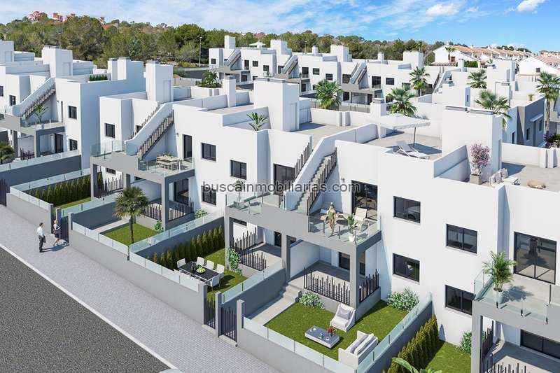 Las viviendas han sido diseñadas para ofrecer amplitud, luminosidad y un estilo de vida cómodo y contemporáneo. En planta baja cuentan con dos dormitorios, dos baños, amplios jardines privados y aparcamiento en superficie; mientras que en planta alta disponen de dos dormitorios, dos baños, un solárium de gran tamaño y plaza de aparcamiento, con el valor añadido de disfrutar de espectaculares vistas al mar. Gracias a sus generosas dimensiones interiores, todas las viviendas ofrecen la posibilidad de personalizar la distribución para incorporar un tercer dormitorio, adaptándose así a las necesidades de cada familia.