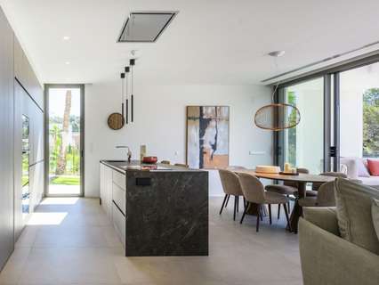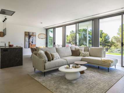La villa se integra con la arbolada de bosque mediterráneo a través espectaculares terrazas ajardinadas y amplios ventanales que funden el interior de la vivienda con su entorno natural.