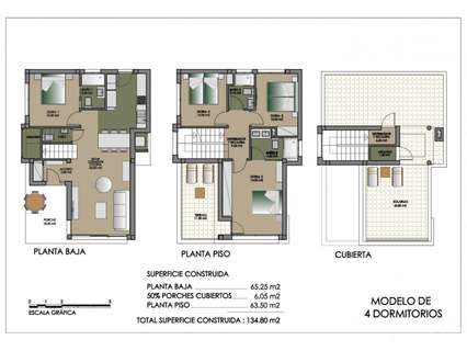 Villas de nueva construcción con 4 dormitorios y 3 baños, cocina abierta con salón-comedor.