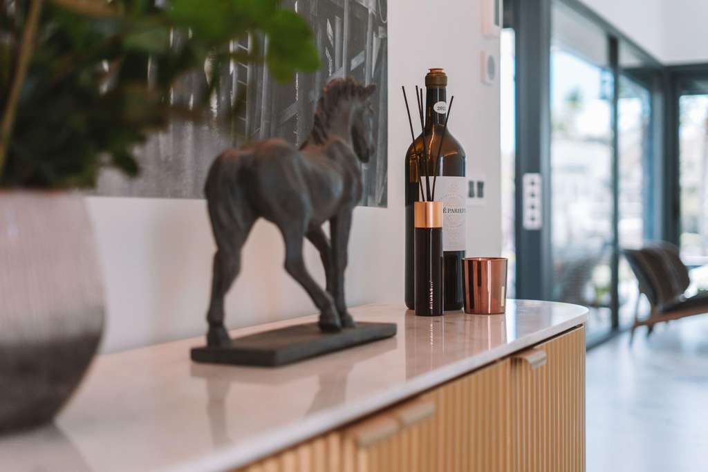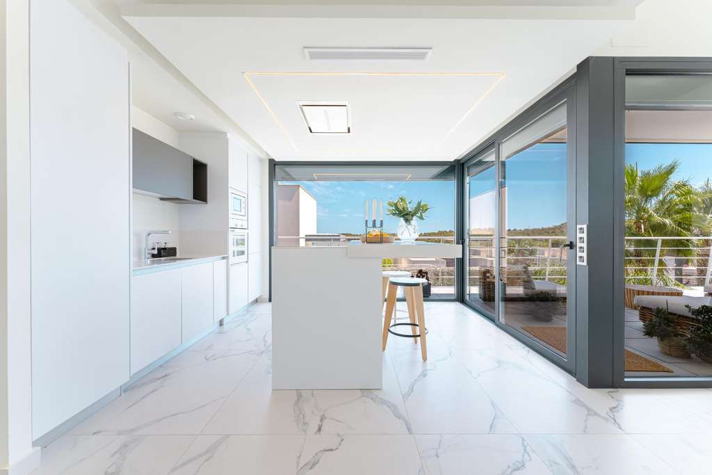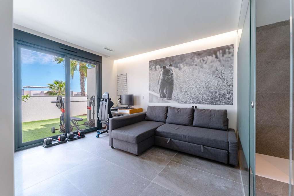 Exclusiva villa de lujo en San Miguel de Salinas, construida en 2021 y diseñada para ofrecer el máximo confort. Con 274 m², la vivienda cuenta con cinco dormitorios y cinco baños, distribuidos en espacios amplios, luminosos y de estilo contemporáneo.~~La entrada principal da acceso a un elegante salón con cocina abierta y grandes ventanales de suelo a techo que inundan la casa de luz natural y ofrecen vistas panorámicas a la Laguna de Torrevieja y al mar en el horizonte. En esta planta se ubica el dormitorio principal con vestidor y baño en-suite, un despacho, otro vestidor, un baño adicional y un aseo. Desde aquí se accede a una terraza de 25 m², ideal para relajarse o disfrutar con invitados.~~La planta baja incluye una segunda cocina moderna, tres dormitorios con salida al patio acristalado —dos de ellos con baño en-suite— y un práctico lavadero. El garaje subterráneo ofrece espacio para varios coches y acceso directo a la vivienda.~~El exterior destaca por su jardín de bajo mantenimiento, una piscina privada con lámina de agua de 25m2 y un espectacular solárium con pérgola, cocina exterior y las mejores vistas al mar de la zona.~~Situada en una urbanización cuidada y cerca de servicios, colegios internacionales y campos de golf, esta villa es una oportunidad única para quienes buscan lujo, privacidad y un entorno inmejorable.~~San Miguel de Salinas es un pueblo tranquilo del sur de Alicante, conocido por su ambiente mediterráneo, buen clima y vistas a las salinas y al mar. Ofrece todos los servicios esenciales, incluida una buena oferta gastronómica y colegios internacionales, además de estar cerca de prestigiosos campos de golf y de las playas de Orihuela Costa y Torrevieja. Es un lugar ideal para quienes buscan calma, naturaleza y una vida cómoda cerca del mar.