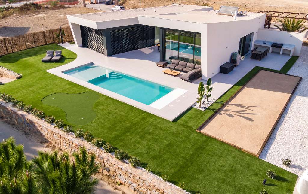 Ofrecemos a la venta este chalet de nueva construcción situado en una prestigiosa urbanización cercana a uno de los complejos de golf más populares de la Costa Blanca. La villa se distribuye en una sola planta, con tres dormitorios, tres baños completos y un aseo de invitados. El interior de la propiedad cuenta con espacios amplios y aireados, con una espaciosa zona de salón dividida en áreas de estar y comedor, y una cocina abierta. En el exterior, la propiedad cuenta con unas zonas verdes perfectamente cuidadas, con una gran piscina y solárium, donde se puede disfrutar del sol español durante la temporada de verano. El proyecto de la villa refleja todas las últimas tendencias arquitectónicas y de diseño, y definitivamente será un lugar perfecto para las vacaciones o para vivir todo el año.La casa está situada en una urbanización de lujo, en el centro del complejo de golf. La exclusiva ubicación de la villa le permite disfrutar de una vida tranquila y apacible en el Mediterráneo, estando al mismo tiempo a poca distancia de los servicios y a un corto trayecto en coche de las hermosas playas de arena de Orihuela Costa. Los aeropuertos de Alicante y Murcia están a una hora en coche de la propiedad, y el mayor centro comercial de la Costa Blanca, Zenia Boulevard, está a sólo 10 minutos en coche.San Miguel es un típico pueblo español con un ambiente amistoso muy especial y muchos expatriados alrededor, también aquí se pueden encontrar todas las comodidades necesarias: una variedad de bares y restaurantes españoles que ofrecen sabrosas tapas, correos, oficinas bancarias y supermercados.