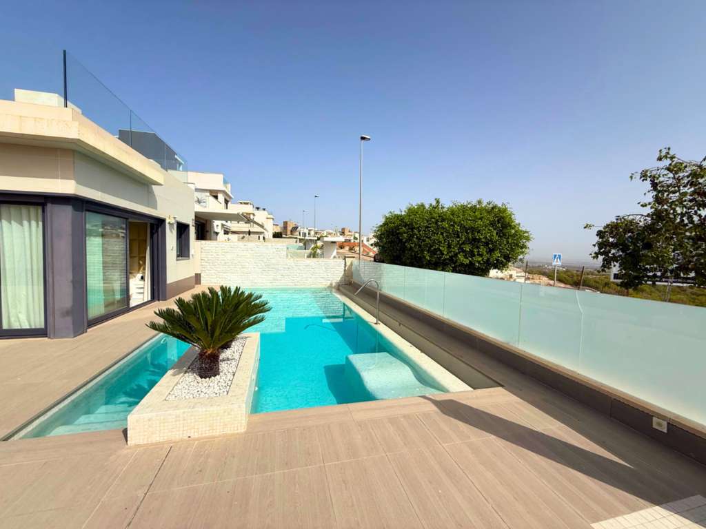 Dos casas en una. Esta espectacular villa ofrece el doble de confort y posibilidades gracias a sus 2 cocinas, 2 salones y una amplia zona recreativa, todo ello distribuido en un diseño moderno y práctico que se adapta a cualquier estilo de vida. Una propiedad única que combina amplitud, exclusividad y unas vistas incomparables a la Laguna Rosa. EXTERIORES La vivienda cuenta con una espectacular piscina privada equipada con sistema de hidromasaje y chorros de agua tipo spa, rodeada de amplias terrazas y zona de barbacoa. El solárium, considerado la cuarta planta de la propiedad, ofrece unas vistas panorámicas completas a la Laguna Rosa y al entorno natural de San Miguel de Salinas, creando el lugar perfecto para relajarse al atardecer. INTERIORES La villa se distribuye en tres plantas principales más un solárium: Planta sótano: amplia zona recreativa equipada con salón, cocina, dos habitaciones, un baño, dos cuartos de almacenaje y un área de juegos interior con billar y futbolín. Planta principal: gran salón con cocina integrada, un aseo de cortesía y la suite principal que incluye vestidor y baño privado. Primera planta: dos habitaciones en suite, cada una con baño y vestidor propio, además de acceso a una terraza privada. Solárium: acceso desde la terraza de la primera planta, con espectaculares vistas panorámicas a la Laguna Rosa y al entorno natural. DETALLES DESTACADOS La vivienda está equipada con hidroestufa de pellet para climatizar toda la casa, además de un ascensor que conecta cómodamente todas las plantas. Todo ha sido pensado para que la experiencia de vivir en esta villa sea cómoda, práctica y de auténtico lujo. Una villa de ensueño en Los Alcores, donde cada espacio invita a disfrutar de la vida mediterránea en su máxima expresión.