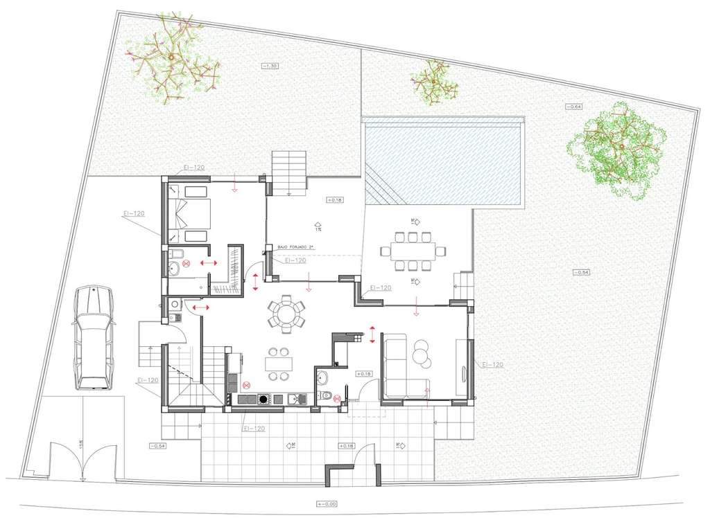 La planta baja cuenta con un luminoso salón-comedor diáfano conectado a una moderna cocina con acceso directo a la terraza y a la zona de la piscina. Esta planta también incluye un amplio dormitorio con baño en suite y vestidor, un aseo de invitados y un lavadero independiente.