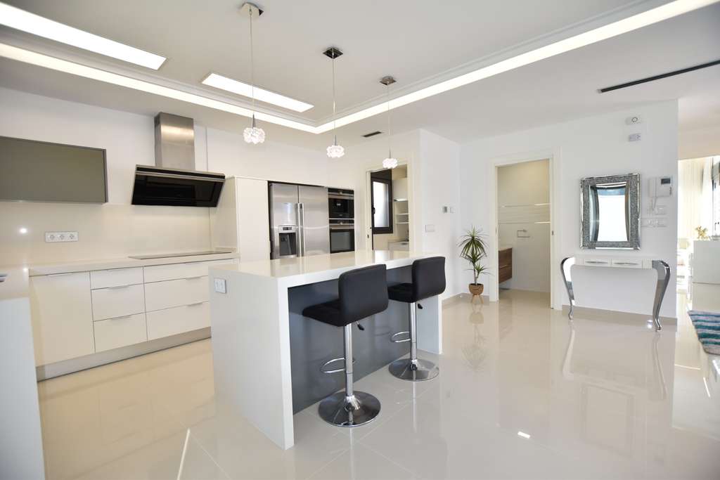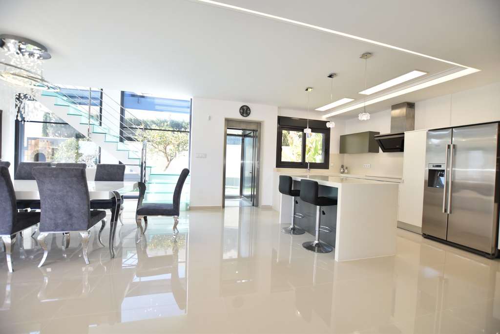 Experimente la vida de lujo en esta impresionante villa independiente con vistas panorámicas. Distribuida en tres plantas y conectadas por un ascensor privado, cuenta con una distribución de 298 m² con piscina privada y cascada, creando un verdadero oasis. La planta baja ofrece un amplio salón-comedor con acceso directo al exterior, una cocina abierta, un lavadero y una suite principal con vistas a la piscina, un amplio baño en suite y un vestidor. En la planta superior se encuentran dos dormitorios, cada uno con su propio balcón y baño en suite, además de acceso a una terraza y un solárium por una escalera exterior. El amplio sótano incluye una zona de juegos abierta, cocina, dos dormitorios adicionales, un baño familiar y espacio de almacenamiento, ideal para invitados o para el entretenimiento. Construida en 2015 con acabados de primera calidad, esta parcela de 430 m² con orientación sur incluye aparcamiento privado para tres coches y combina comodidad, diseño y funcionalidad.