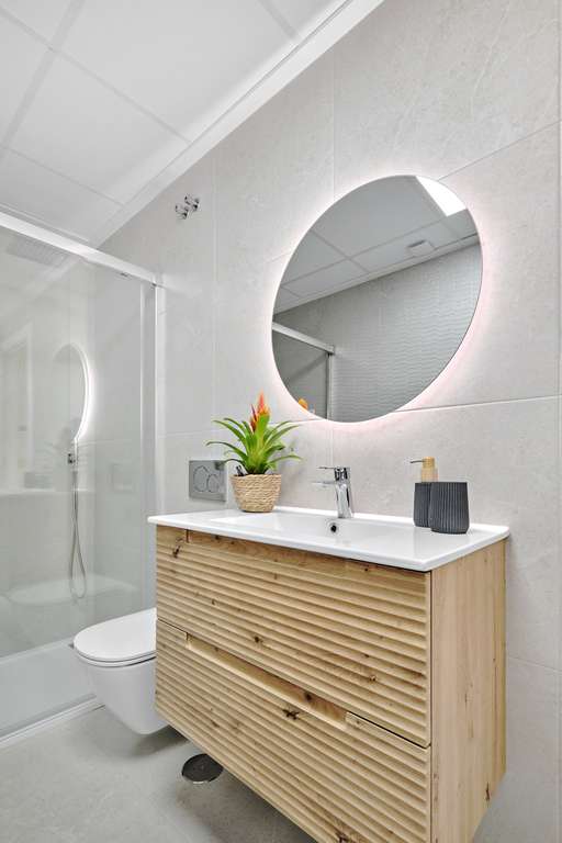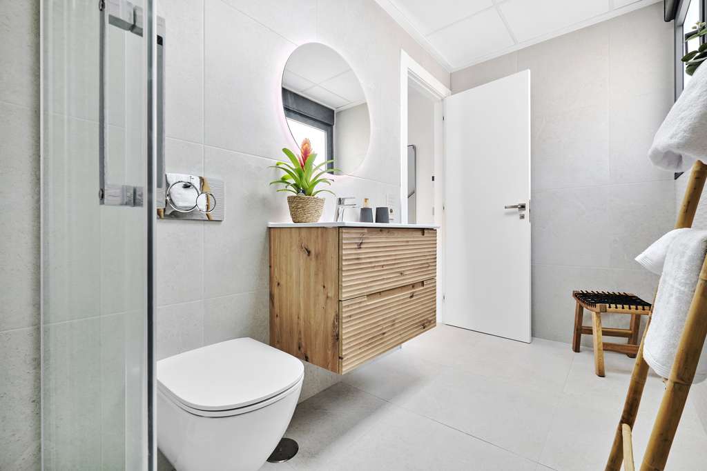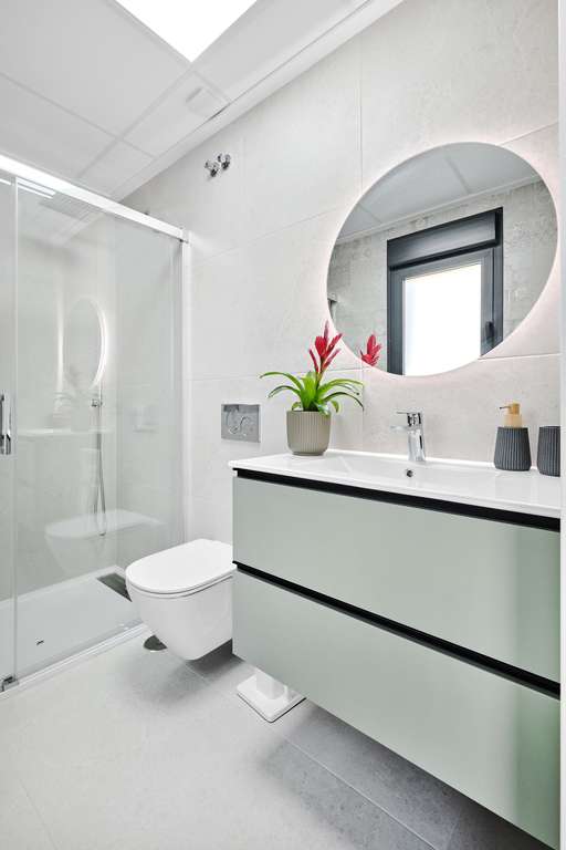 El interior de estas viviendas independientes está diseñado con un enfoque en la comodidad y la funcionalidad. Con tres dormitorios y dos baños, cada propiedad ofrece un espacio amplio y bien distribuido. Los suelos de gres porcelánico aportan un toque de elegancia y durabilidad a los espacios interiores. Las cocinas están equipadas con electrodomésticos modernos, facilitando la vida diaria. Además, el aire acondicionado asegura un ambiente confortable durante todo el año. Los armarios empotrados proporcionan un almacenamiento eficiente, manteniendo los espacios ordenados y libres de desorden.