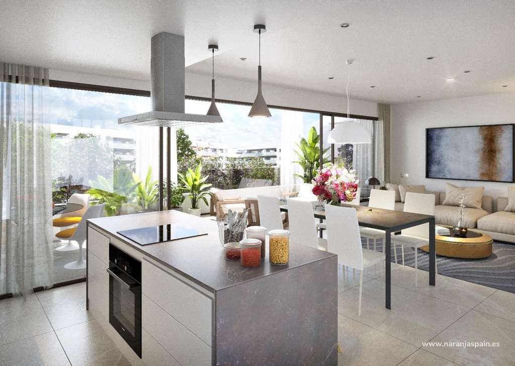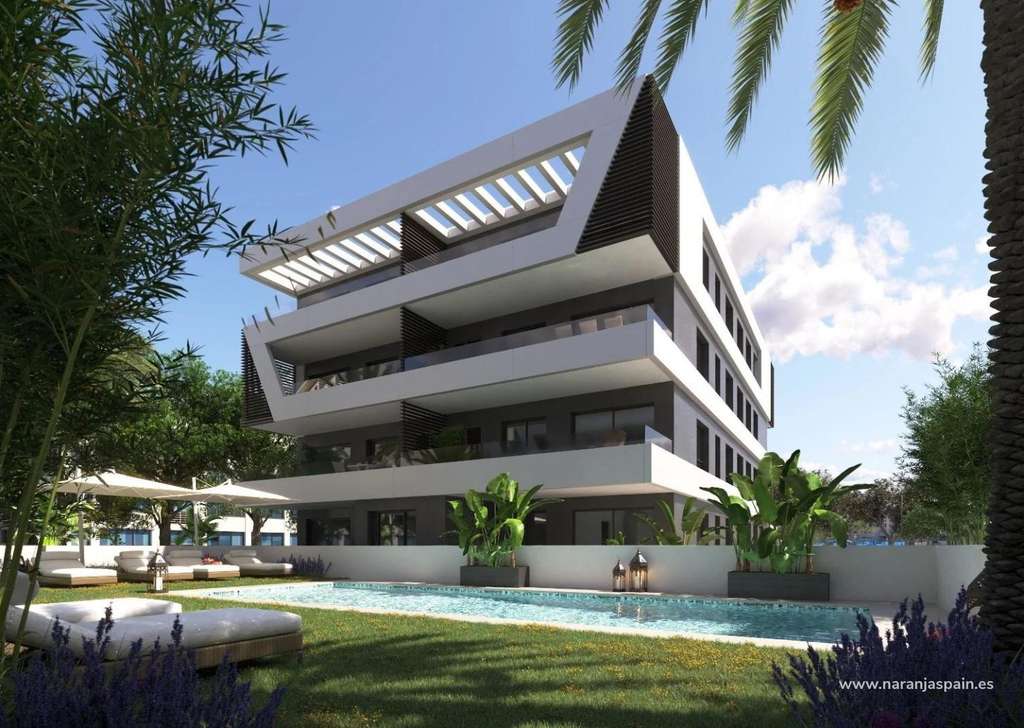 Complejo residencial de Obra Nueva de 32 modernos apartamentos y áticos situado en la zona de Nou Nazareth en San Juan de Alicante.