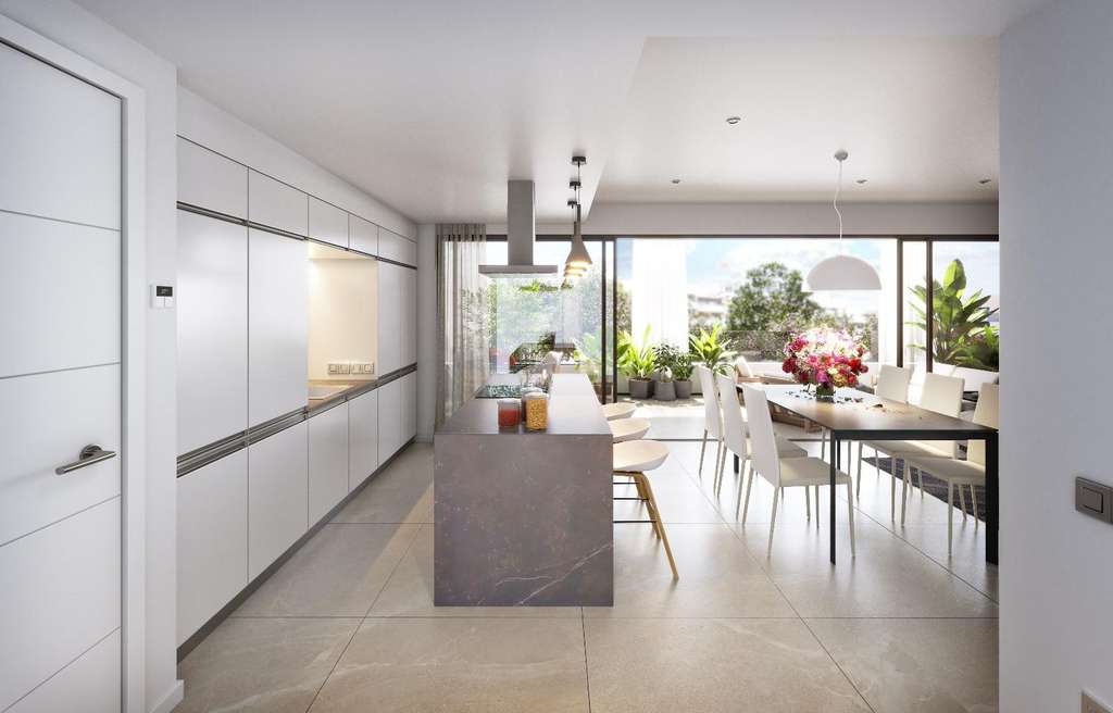 La elegante atemporalidad de sus acabados y la luminosidad que aporta su amplia terraza dotan a la vivienda de profundidad y continuidad con el exterior, creando amplios espacios para el disfrute.