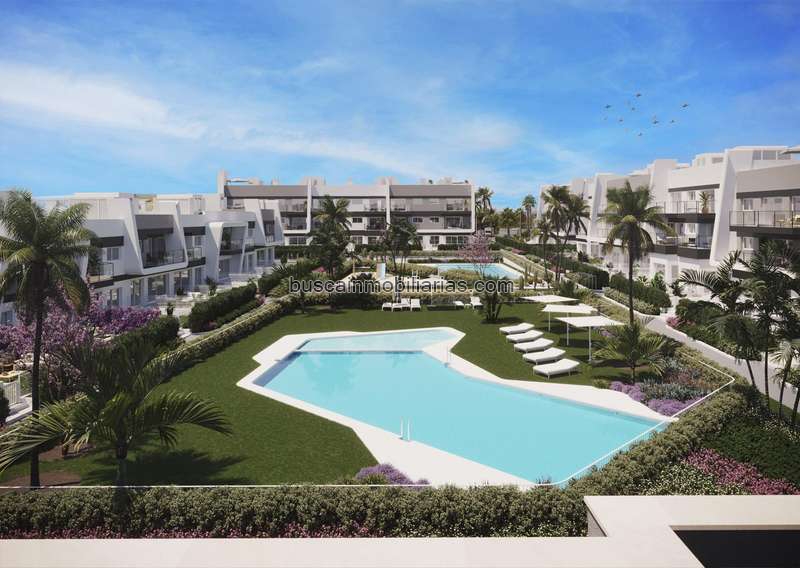 conjunto de viviendas que comparten una piscina común. Los bajos suelen tener un pequeño jardín privado y los áticos disponen de un solárium donde puedes disfrutar del sol y las vistas. Esta urbanización es ideal para aquellos que buscan un estilo de vida activo y al aire libre, con comodidades como el garaje y trastero incluidos y zonas comunes espaciosas.