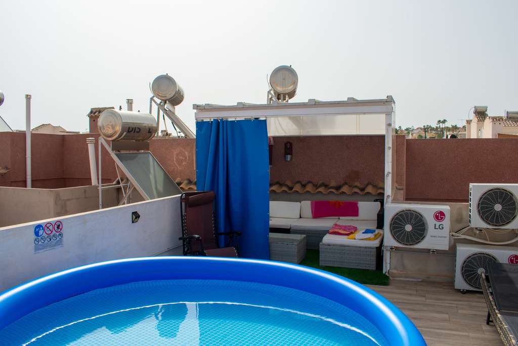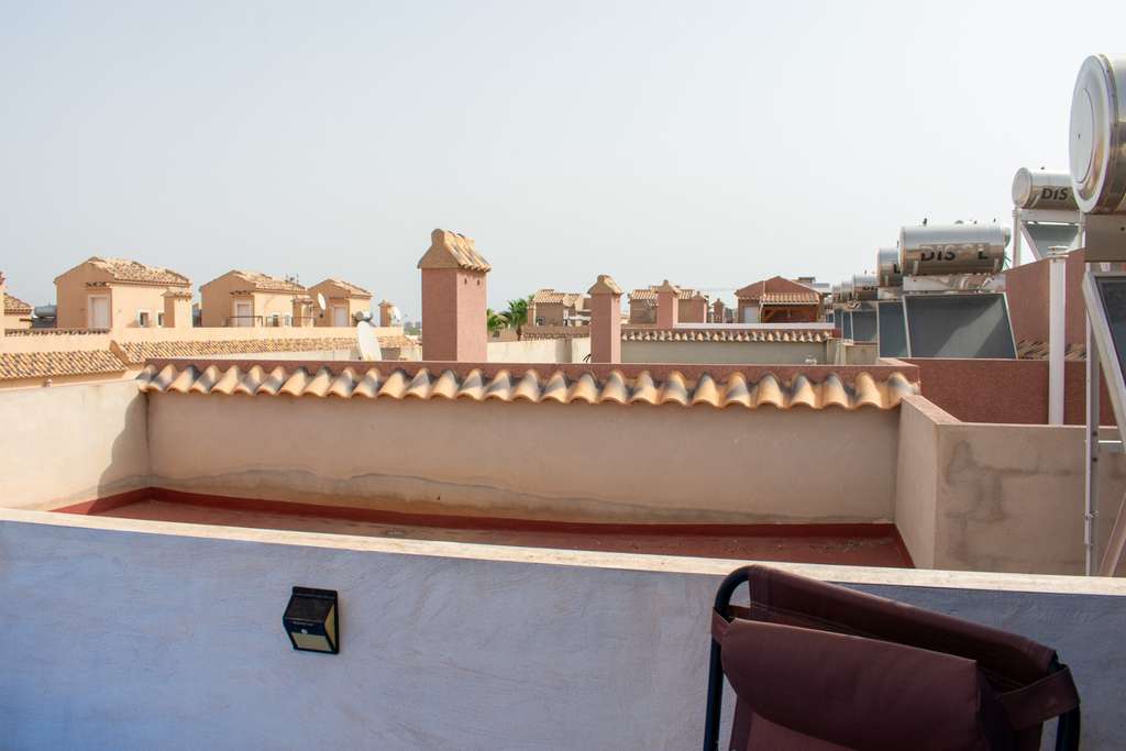Descubra este bungalow adosado en Gran Alacant, una ubicación privilegiada en la Costa Blanca a solo 10 km del Aeropuerto Internacional de Alicante y a 15 km del centro de la ciudad. La vivienda cuenta con 3 amplios dormitorios, 3 baños completos (con plato de ducha y bañera de hidromasaje), un acogedor salón con cocina semiabierta, además de prácticos armarios empotrados.