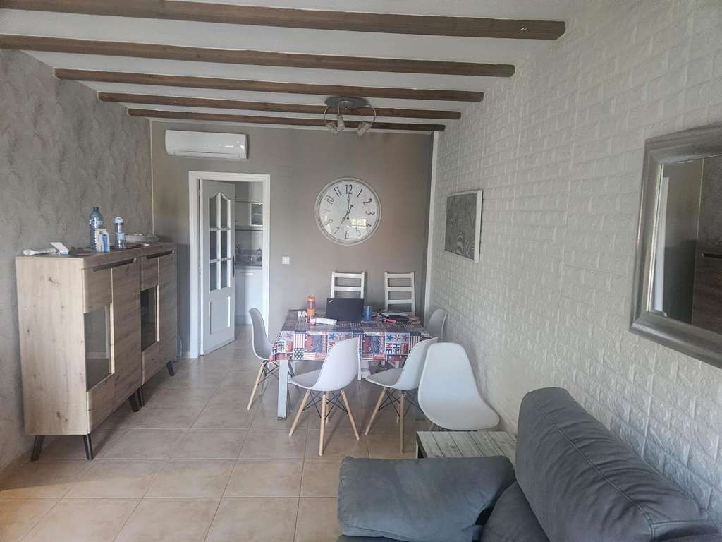 Descubre este encantador adosado en la privilegiada zona de Gran Alacant, ideal para disfrutar del estilo de vida mediterráneo. Con una superficie construida de 60 m² y recientemente reformado, esta propiedad cuenta con dos acogedoras habitaciones dobles que ofrecen comodidad y tranquilidad. El exterior destaca por su amplia terraza privada de 38 m² perfecta para relajarse o celebrar reuniones al aire libre. Además, podrás acceder a un solárium privado donde gozar del maravilloso clima local. La comunidad ofrece diversas amenidades como piscina comunitaria, pista de tenis y parque infantil; ideales tanto para familias como para aquellos que buscan un ambiente recreativo. A tan solo 1 km del mar Mediterráneo, tendrás las mejores playas a tu alcance mientras disfrutas también de cercanía a autobuses públicos, centros comerciales e instituciones educativas. Este adosado no solo es atractivo por sus características internas sino también exteriores: se encuentra dentro de una urbanización bien cuidada rodeada árboles que brindan frescura al entorno urbano vallado.