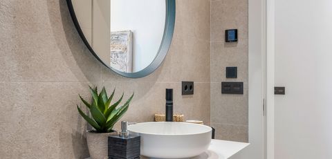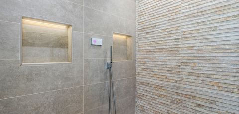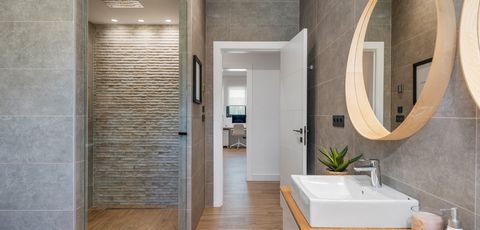 La casa tiene 3 baños con ducha, 1 aseo de invitados y 2 baños con bañera de hidromasaje. Hay calefacción por suelo radiante dentro de las duchas y también en cada habitación.