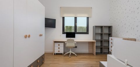 La vivienda dispone de salón-comedor de 45m2 comunicado con amplia cocina de diseño de 37m2 con cuarto para plancha, y 5 amplias habitaciones (salón de niños, despacho y gimnasio, habitación de chico de 20 m2, habitación de chica de 18m2 y un dormitorio principal de 67 m2.) El dormitorio principal dispone de vestidor de 20 m2 y acceso directo al jardín ya la piscina.