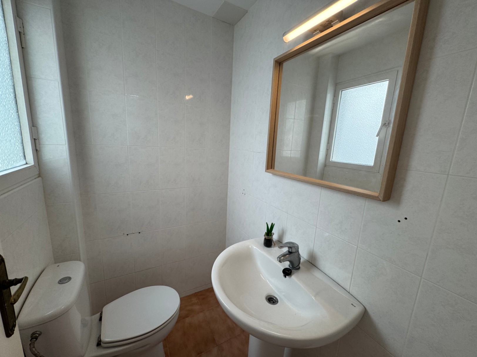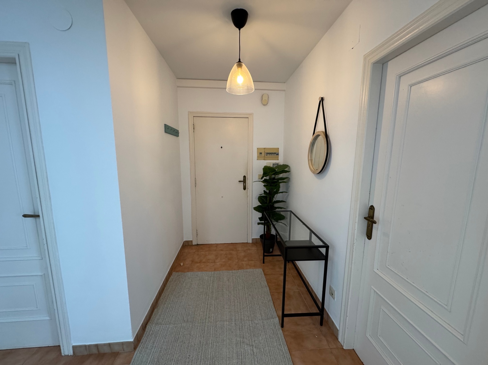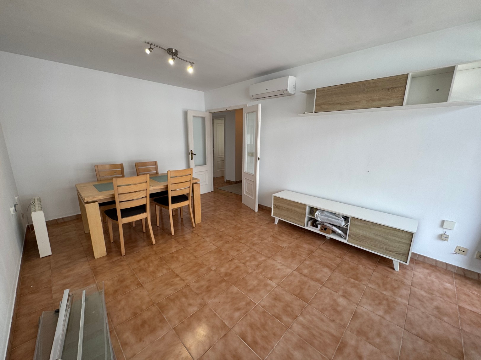 El apartamento se ubica en un edificio con ascensor, y se distribuye: hall de entrada, salón-comedor con salida a terraza, cocina independiente con salida a lavadero, 1 aseo de cortesía, 3 dormitorios dobles con armarios empotrados y 1 baño (con ducha y bañera) familiar. Ventanas de aluminio con cristal doble. Aire acondicionado (frío/calor) en el salón y dormitorio principal. Ventilador de techo en los otros 2 dormitorios. Radiadores eléctricos en todas las estancias.