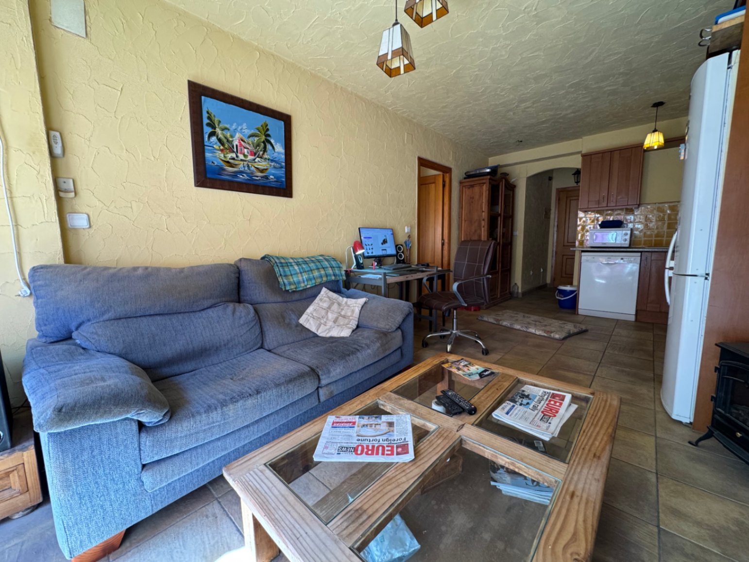 El apartamento se ubica en un edificio con ascensor, en una primera planta y consta de: salón-comedor con salida a terraza de buen tamaño, cocina abierta al salón, 1 dormitorio doble con armarios empotrados y baño en-suite con bañera hidromasaje. Ventanas de PVC con cristal doble. Aire acondicionado (frío-calor) en el salón.
