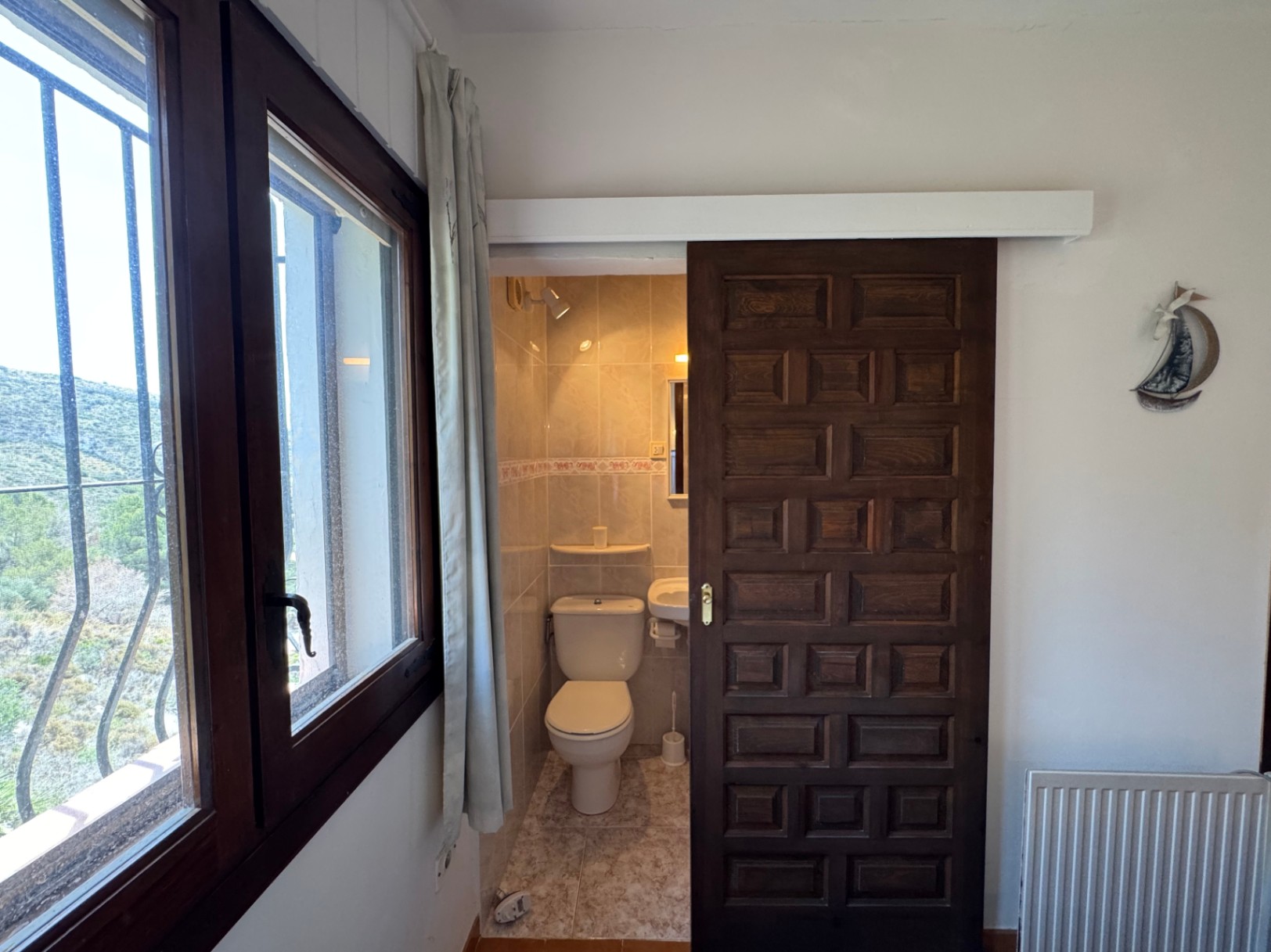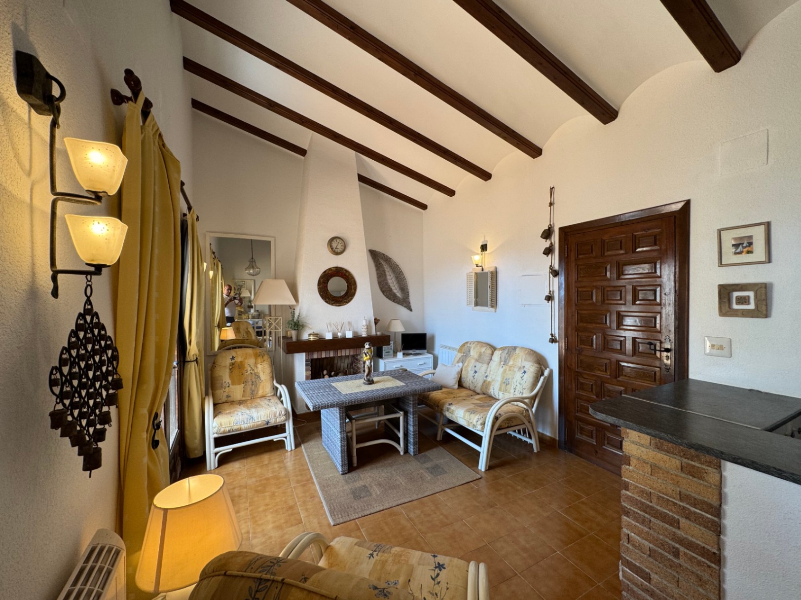El apartamento (63 m2) se distribuye de la siguiente manera, subiendo escalones accedemos a la terraza de entrada, porchecito de entrada, cocina con barra americana, salón-comedor con chimenea, salida a otro porche (9 m2) y a una gran terraza de 25 m2 con espectaculares vistas al mar y panorámicas, aquí en la terraza hay 1 trastero y un lavadero, 2 dormitorios dobles, uno de ellos con un pequeño en-suite aseo con ducha y otro aseo con ducha familiar. Debajo de la terraza hay otro trastero. Radiadores eléctricos
