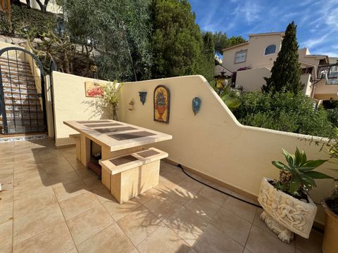 Se vende apartamento en la Urbanización Castellons vida, entre Teulada y Benitachell con bonitas vistas al mar y panorámicas, a 6 km de Moraira y sus playas y a tan solo 1,5 km de Teulada y servicios. El apartamento se sitúa en un bloque de 4 viviendas, este en la planta baja y se distribuye de la siguiente manera: se bajan unos escalones y tiene una terraza (24 m2), porche, salón-comedor con aire acondicionado (frío-calor), cocina con barra americana, subiendo 4 escalones otro comedor y cuarto lavadero, 2 dormitorios dobles con armarios empotrados, uno de ellos con aire acondicionado (frío-calor) y el otro con salida a terraza y 1 baño familiar. La urbanización tiene piscina comunitaria, pistas de tenis y alumbrado en las calles.