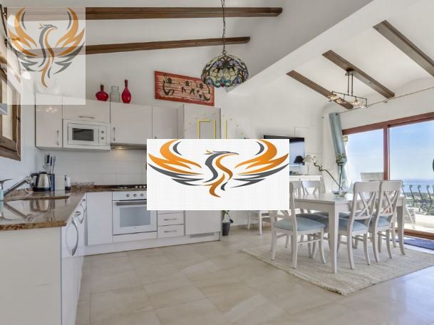 Planta principal: Amplio y luminoso salón con cocina concepto abierto, comedor con acceso directo a la terraza donde se disfruta de magníficas vistas al mar, Moraira y Peñon de Ifach.