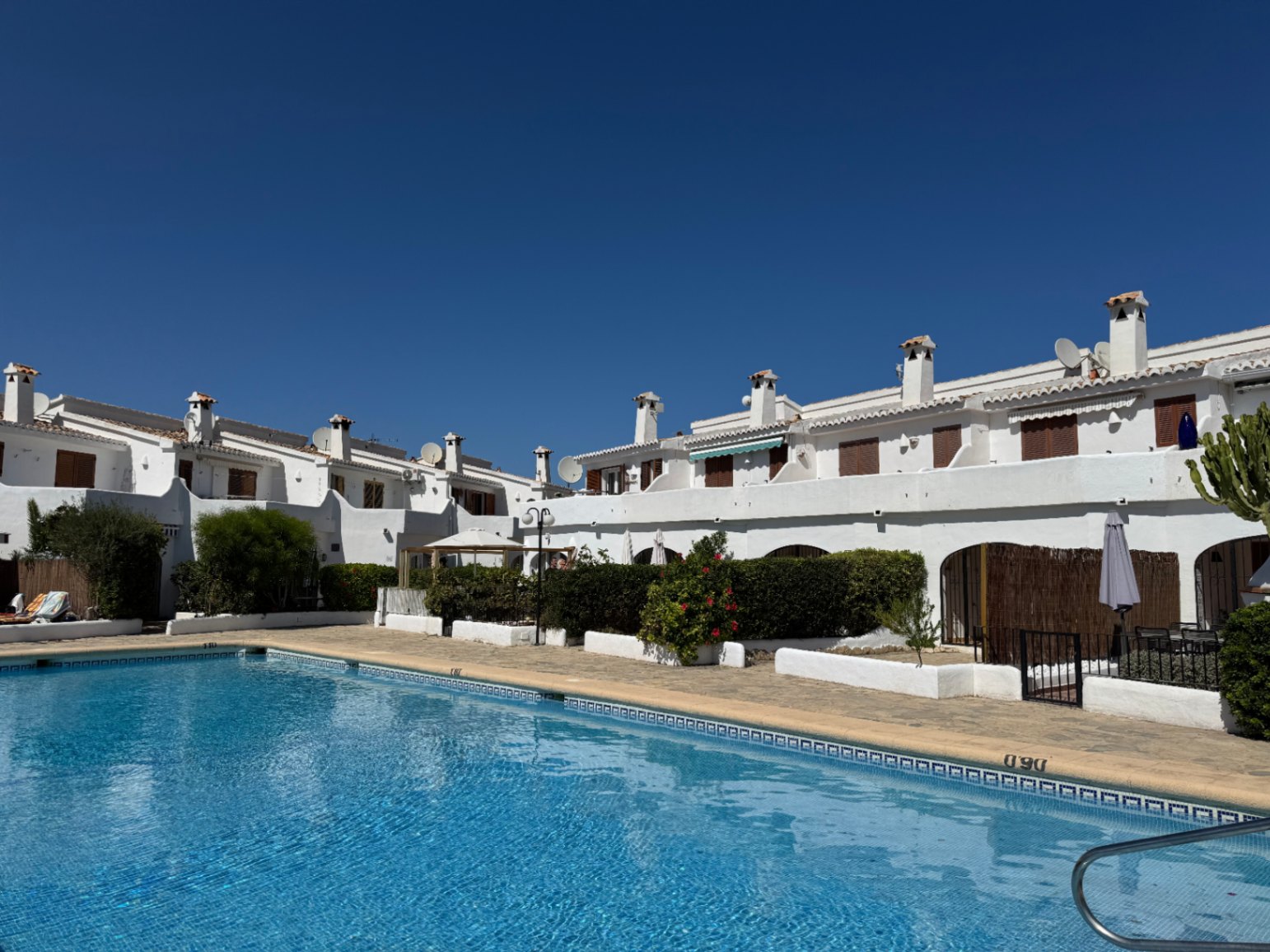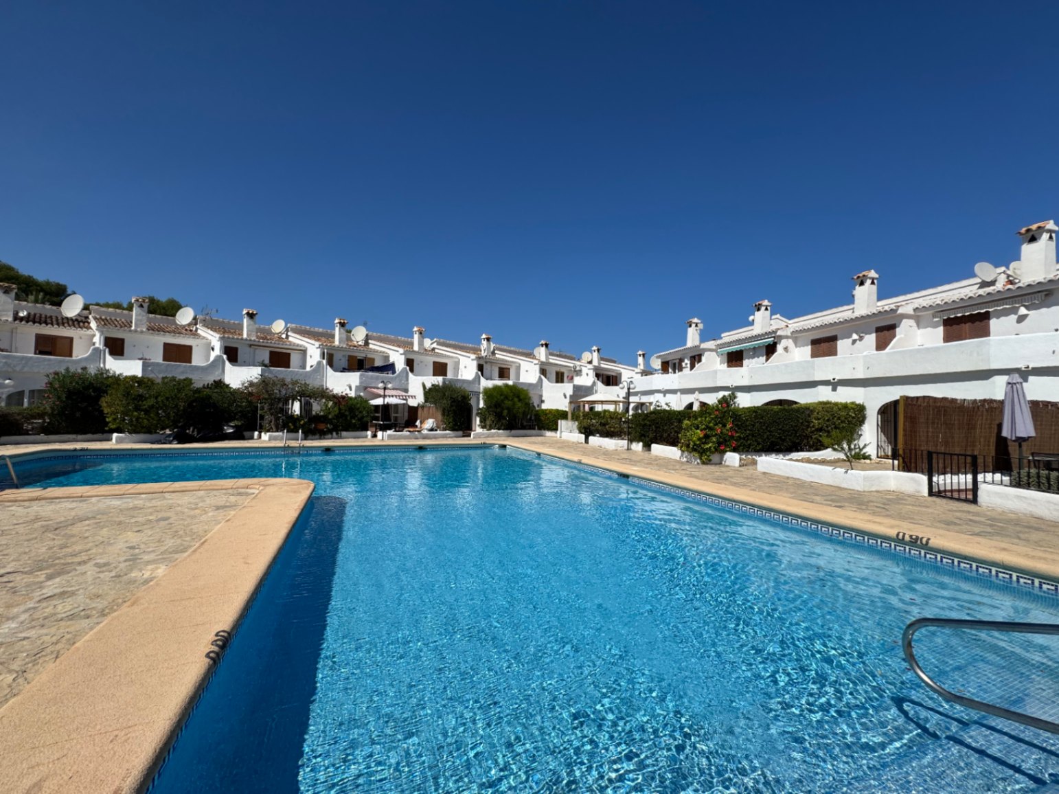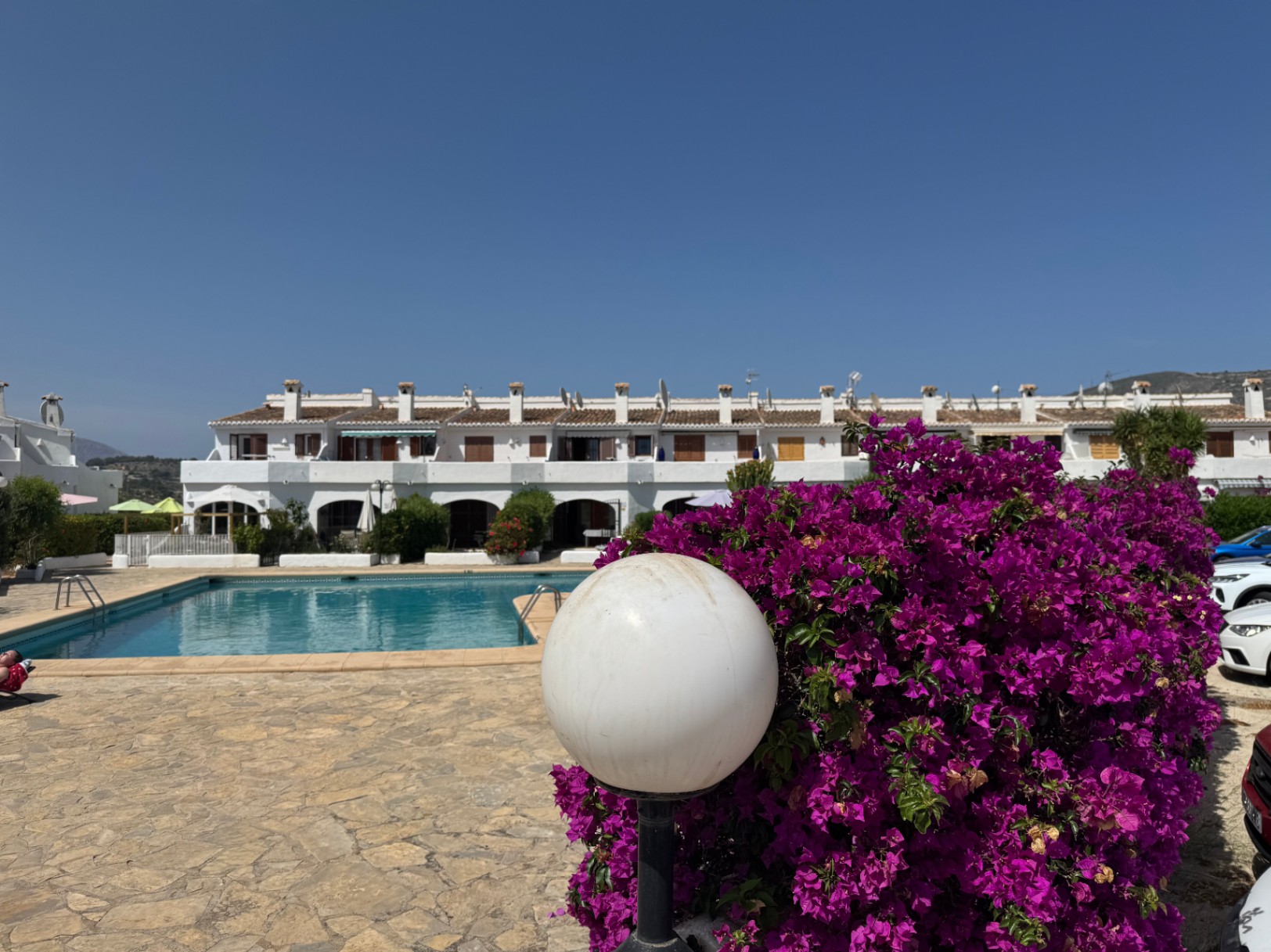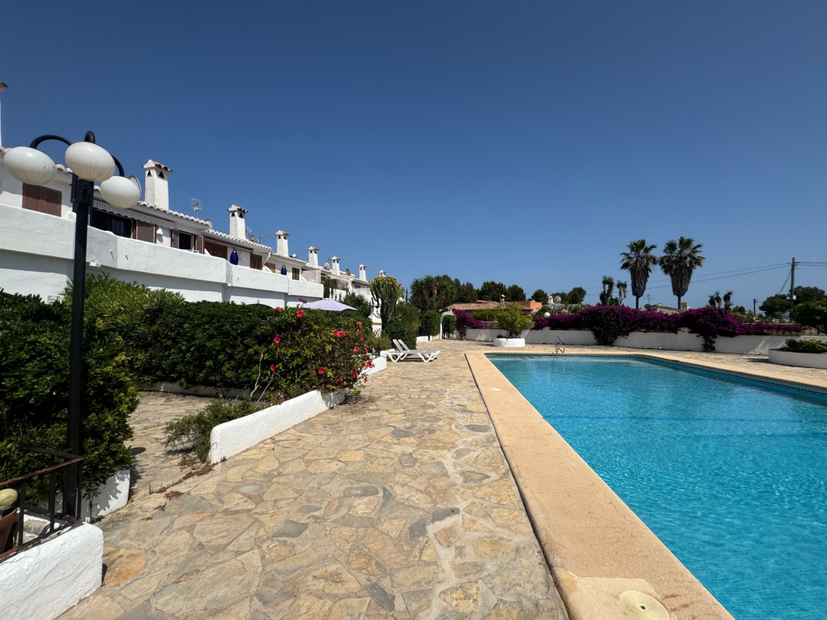 Moraira, se vende bungalow en un bonito complejo de tan solo 22 casas, muy tranquilo, con piscina comunitaria, a 800 m de supermercado y servicios y a 5 minutos en coche (2,5 km) del centro de Moraira y playas.