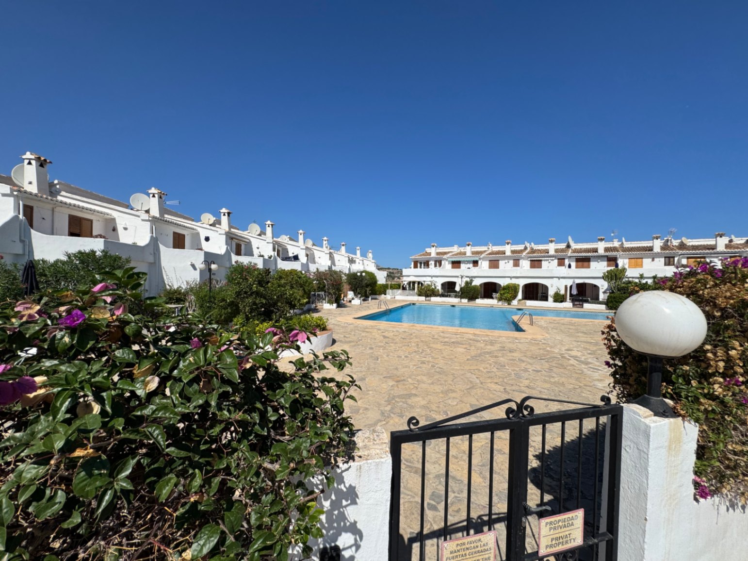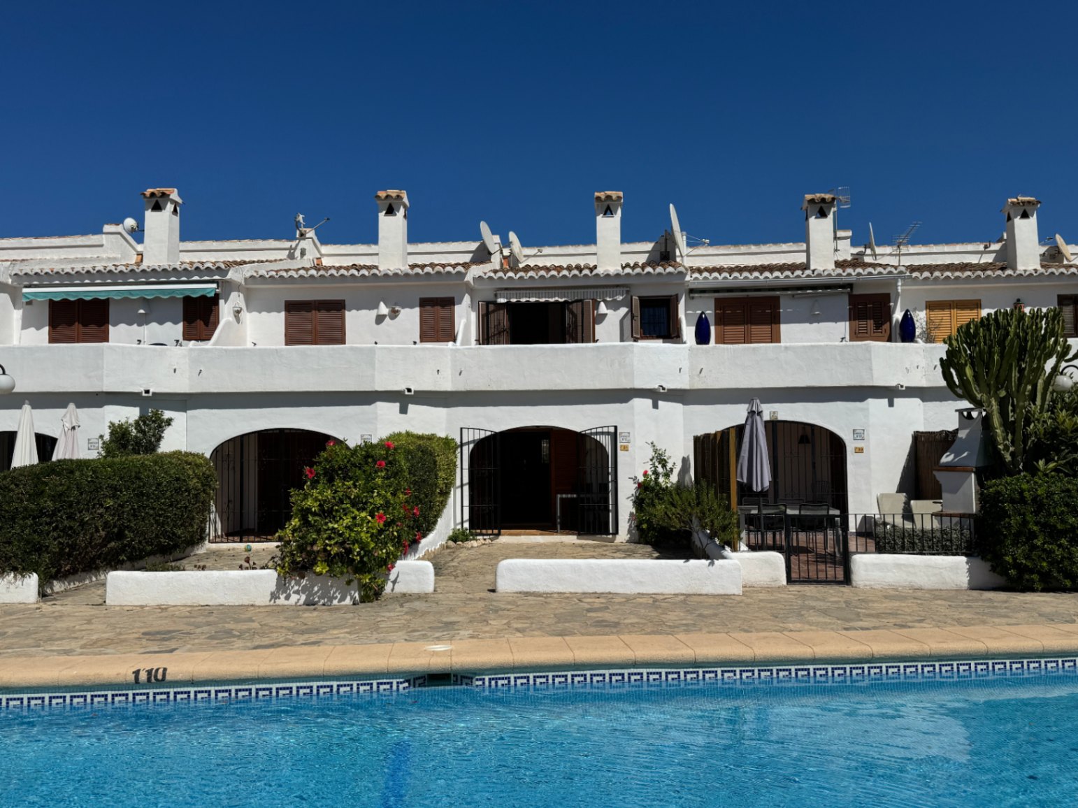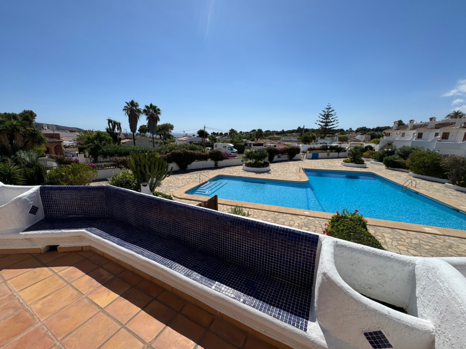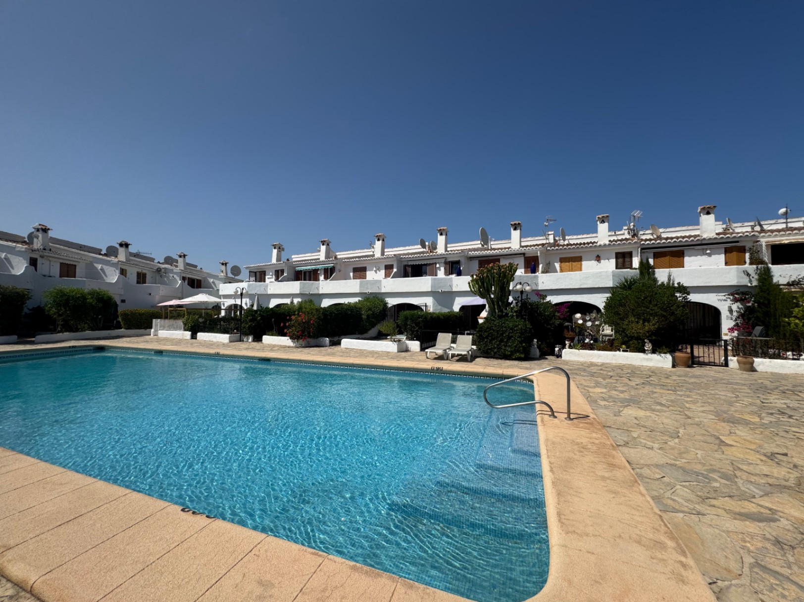 Moraira, se vende bungalow en un bonito complejo de tan solo 22 casas, muy tranquilo, con piscina comunitaria, a 800 m de supermercado y servicios y a 5 minutos en coche (2,5 km) del centro de Moraira y playas.