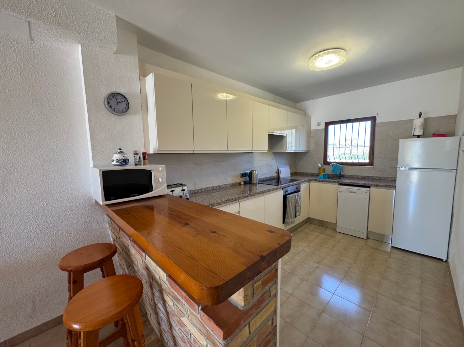 La vivienda se distribuye en 2 plantas comunicadas interiormente. La planta baja consta de: terraza, porche, salón-comedor con chimenea y estufa de leña, cocina con barra americana, renovada en 2019, aseo con ducha y escalera que conduce a la planta alta, que consta de: distribuidor con armarios empotrados, 3 dormitorios (2 dobles y 1 simple) con armarios empotrados, uno de ellos con salida a terraza y 1 baño. Ventanas de PVC con cristal doble. Ventiladores de techo en todas las estancias. Aire acondicionado (frío-calor) en escalera.