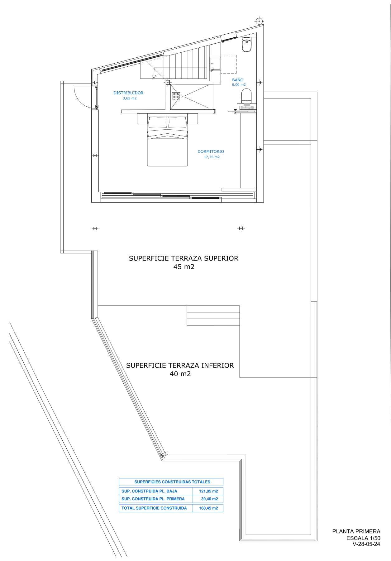 La planta alta consta de: dormitorio principal con salida a terraza yen-suite aseocon ducha. La terraza está preparada para pérgola bioclimática. Ventanas de aluminio con cristal doble. Persianas eléctricas. Aire acondicionado (frío-calor) por conductos con sistema aerotermia.Placas solarespara agua caliente. Interfono. Puerta entrada parcela automática.