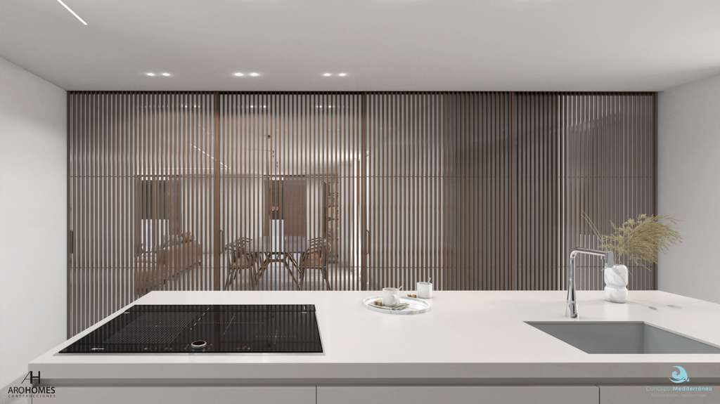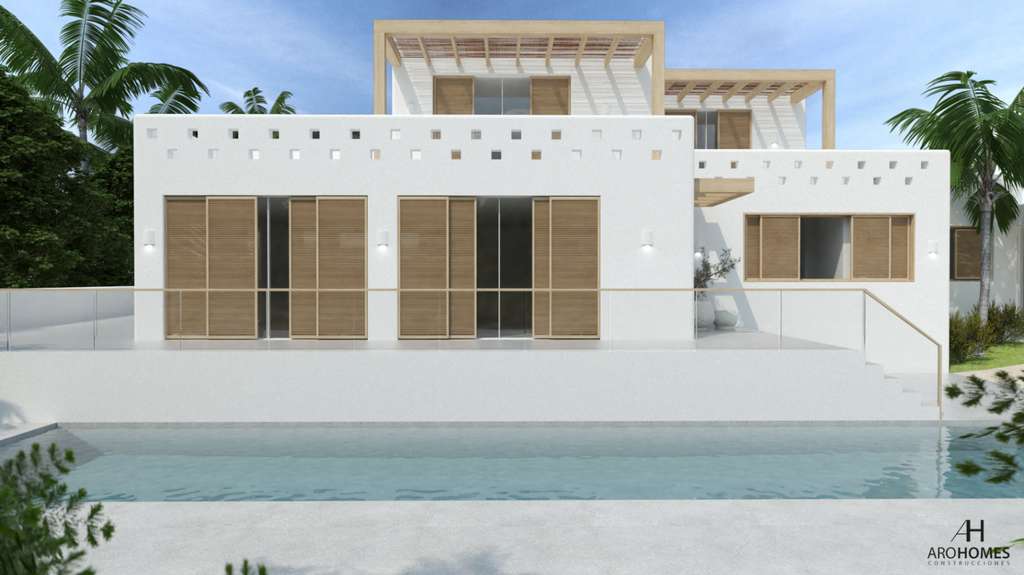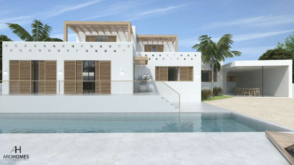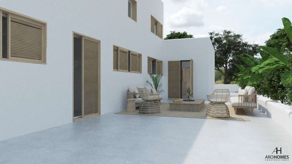 Proyecto para reformar un Chalet en estilo Ibiza con licencia de obras en venta en La Sabatera Moraira en la Costa Blanca de Alicante de España, situada a 2 kilómetros del centro y las playas de Moraira. La villa de diseño está en el área de La Sabatera, construida en parcela de 811 m2 con 250 m2 construidos en 2 plantas conectadas con escalera interior. Orientación sur, la villa moderna esta distribuida en espacioso salón-comedor, 4 habitaciones con baño en suite, 1 aseo de invitados, cocina, jardin, piscina privada, lavadero. Vistas al mar desde la 1ª planta. En el exterior hay dos plazas de aparcamiento privadas, jardín de bajo mantenimiento y piscina privada de 3.50 x 14. Equipada con suelo radiante, aire acondicionado por conductos y pre-instalación de domótica.