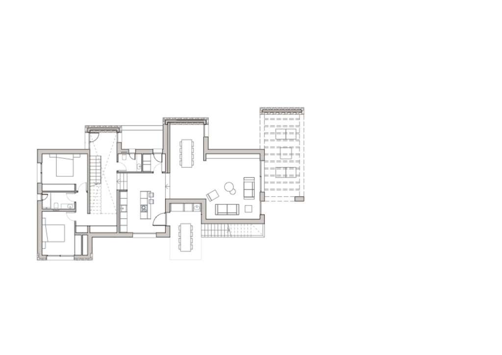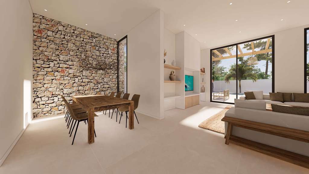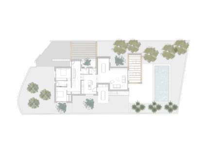 Con una superficie construida de 541,16 m² y un jardín de 389,56 m², esta casa está diseñada para maximizar el confort y la funcionalidad. Al entrar, el vestíbulo da paso a un amplio salón-comedor con cocina integrada, creando un espacio abierto y luminoso perfecto para la vida familiar y el entretenimiento. Desde aquí, se accede directamente a la terraza y a la zona de la piscina, ideal para disfrutar del clima mediterráneo.