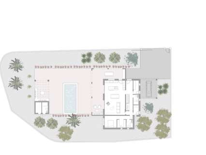 Con una superficie construida de 589,05 m² y un jardín de 572,39 m², esta residencia está diseñada para ofrecer el máximo confort y funcionalidad. Al entrar, se encuentra un vestíbulo que conduce a un amplio salón-comedor con cocina integrada, creando un espacio abierto y luminoso perfecto para la vida familiar y el entretenimiento. Desde aquí, se accede directamente a la terraza y la zona de la piscina, ideal para disfrutar del clima mediterráneo.