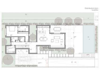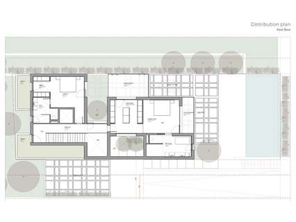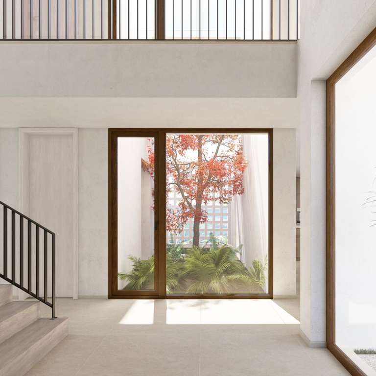 La planta baja de la villa cuenta con un amplio salón, comedor, cocina, un dormitorio principal con baño en suite y vestidor, así como un aseo de invitados. La zona de estar conecta a la perfección con el exterior a través de amplias terrazas cubiertas, una piscina privada y hermosos jardines mediterráneos.