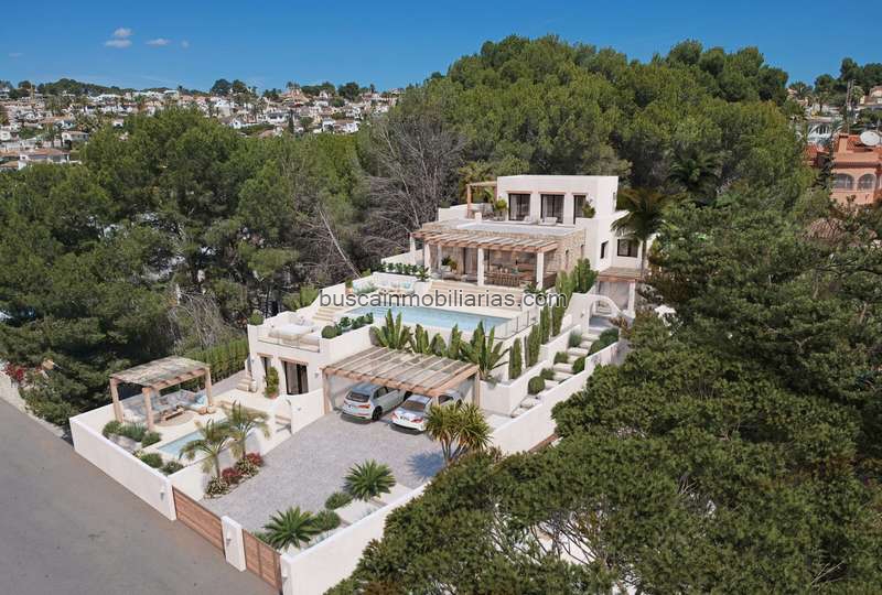 Lujosa villa ibicenca con preciosas vistas a la montaña y al mar. La casa tiene 400 m² en una parcela de 950 m².