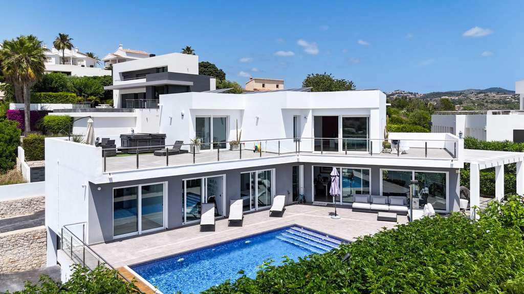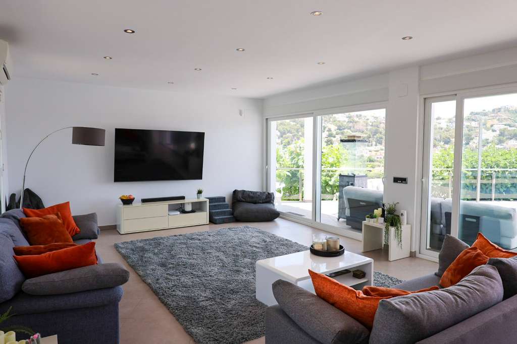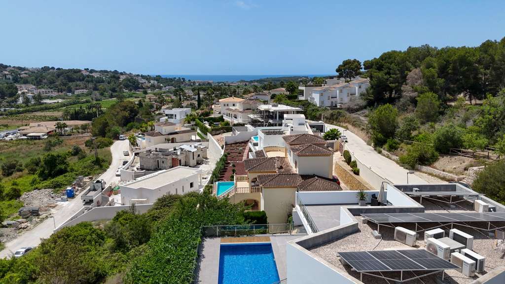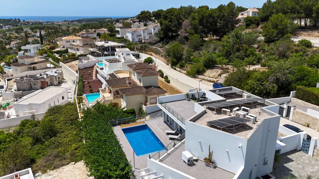 En la codiciada urbanización Sol Park, a solo unos minutos del encantador centro de Moraira, se encuentra esta moderna y luminosa villa que lo tiene todo: espacio, luz natural y lujo mediterráneo.