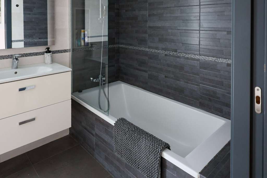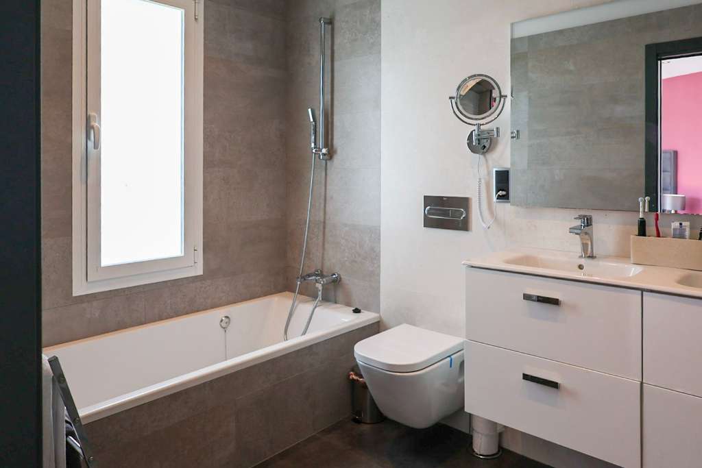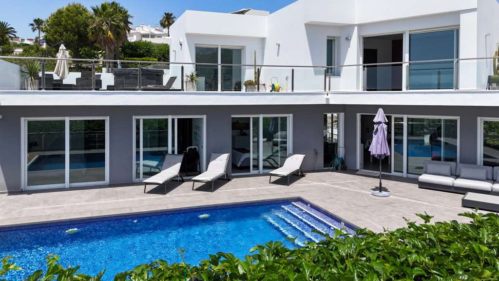 La villa cuenta con cuatro amplios dormitorios y una habitación adicional, perfecta como oficina, sala de juegos o quinto dormitorio. Dispone de tres baños completos, diseñados con gran atención al detalle. La suite principal, situada en la planta alta, ofrece acceso directo a una gran terraza soleada con su jacuzzi privado: un auténtico refugio de relajación.
