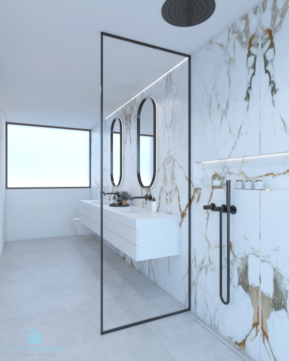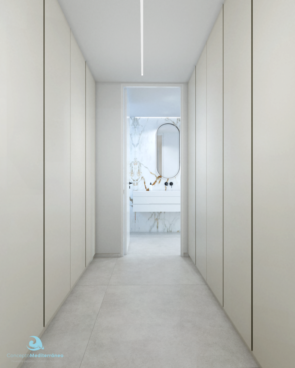 Se vende chalet de obra nueva en Moraira, en Paichi, en una zona residencial muy tranquila (carretera sin tráfico), a 1,5 km del centro de Moraira, del mar y de todo tipo de servicios ya 1,5 km de la exclusiva Playa El Portet (Moraira). Esta hermosa villa de lujo con un diseño moderno disfruta de mucho sol y hermosas vistas despejadas. Se encuentra en una parcela llana de 891 m2 y tiene una superficie total construida de 268 m2 distribuidos en 2 plantas de la siguiente manera: En la planta baja tenemos el hall de entrada, un garaje de 32 m2 (para 2 vehículos) donde se accede a el interior de la vivienda, 4 amplios dormitorios todos con baños en suite y grandes armarios empotrados, 1 aseo de cortesía, lavadero, fantástica cocina-comedor (todo diáfano, con isla, total 60 m2) y un porche de 15 m2 que comunica con la terraza exterior donde hay una piscina rectangular de 50 m2 con zona de relax integrada. A la planta baja se accede a través de una espectacular escalera suspendida de diseño. En la planta superior tenemos el amplio dormitorio principal de 23m2 con gran vestidor, baño en suite y gran terraza privada de 25m2. Esta villa vanguardista destaca por su atractivo y cuidado diseño, así como por sus acabados y calidades. Está equipada con suelo radiante y aire acondicionado por conductos (sistema de aerotermia, alta eficiencia, mínimo consumo), carpintería técnica exterior (Lumeal GA) + Smart Glass, (Soleal Fy) + persianas automáticas, suelos porcelánicos, gres exclusivo, cocina de diseño exclusivo Bulthaup, totalmente equipada con electrodomésticos de Alta Gama, barandillas de cristal sin perfilería, chimenea de diseño, iluminación LED… Además dispone de una amplia plaza de parking exterior para varios vehículos. El jardín es muy bonito y de estilo mediterráneo, con diferentes zonas y con riego automático (bajo mantenimiento) e iluminación exterior individual.