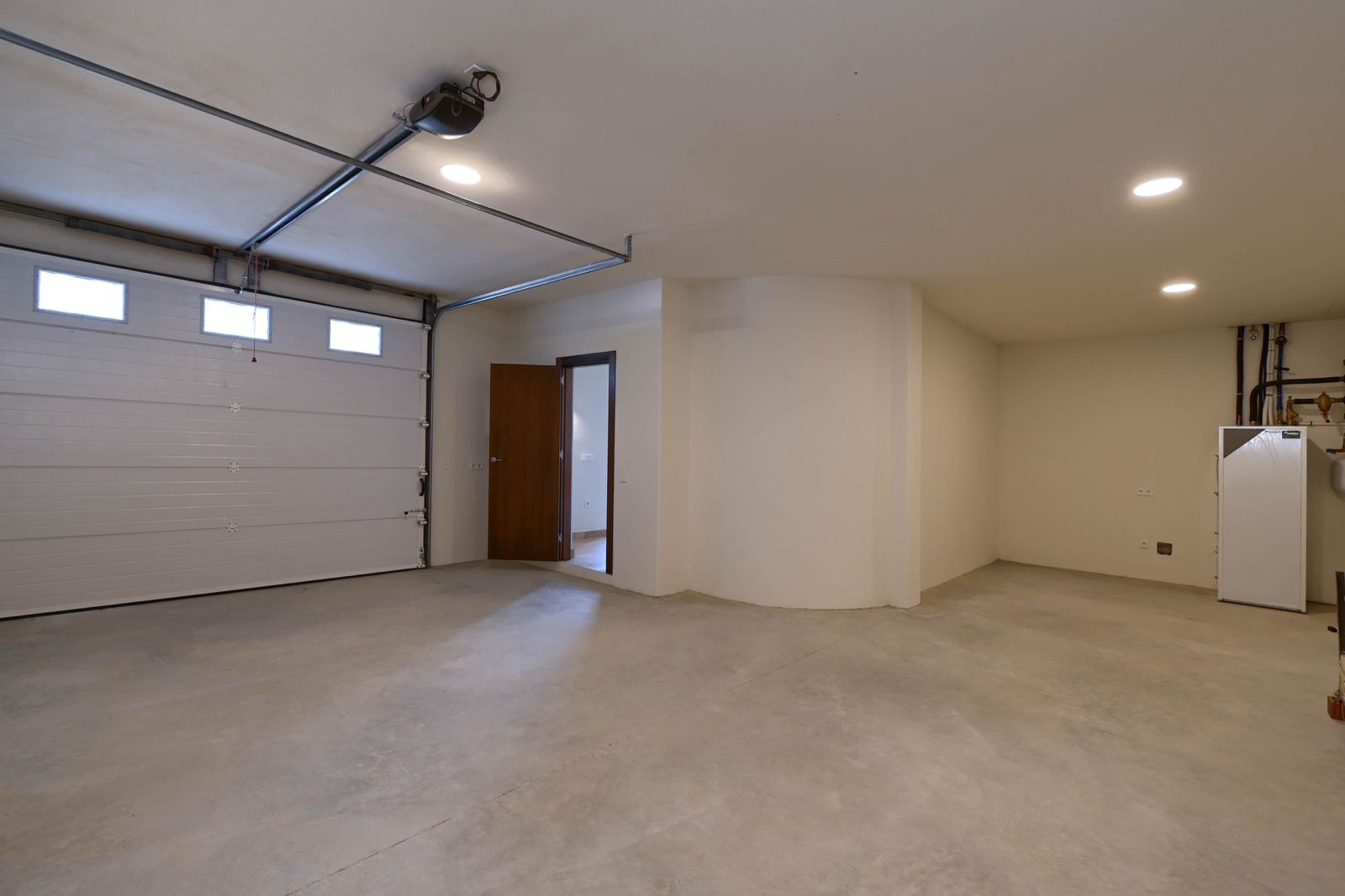 Un amplio camino de entrada conduce a un amplio garaje, con acceso por ascensor que conecta todas las plantas para una máxima comodidad. En la planta baja, la villa cuenta con: