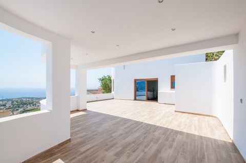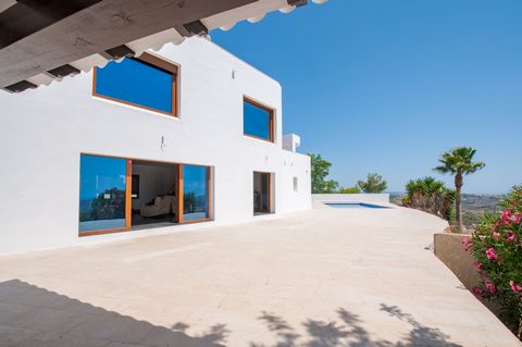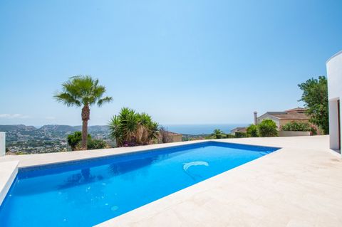 Villa moderna con espectaculares vistas al mar en venta en Moraira. Orientada al sur y construida en una gran parcela, la propiedad ofrece 394 m² de superficie construida en dos niveles. La planta superior está dedicada exclusivamente a la suite principal con baño en suite, vestidor y acceso a una terraza cubierta privada.La planta baja incluye un amplio salón-comedor, cuatro habitaciones adicionales y tres baños (dos en suite). Una de estas habitaciones también cuenta con un vestidor.La villa incluye calefacción por suelo radiante (frío/calor), aire acondicionado preinstalado, sistema de alarma, persianas automáticas, puerta eléctrica, una piscina privada (aprox. 4.5 x 9 m) con cubierta, cocina exterior y ducha, garaje, dos plazas de aparcamiento y un gran trastero. La instalación de la cocina deberá ser completada por el comprador.